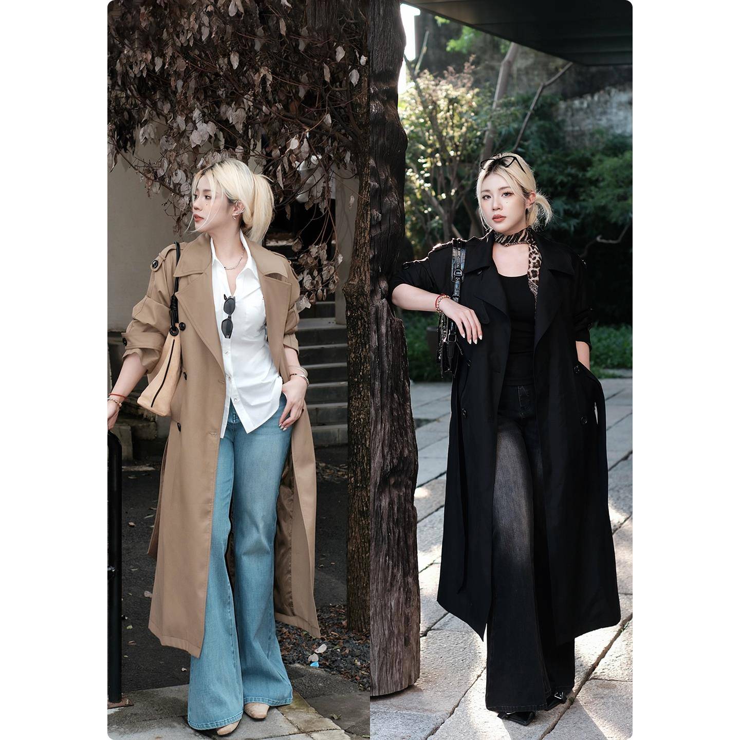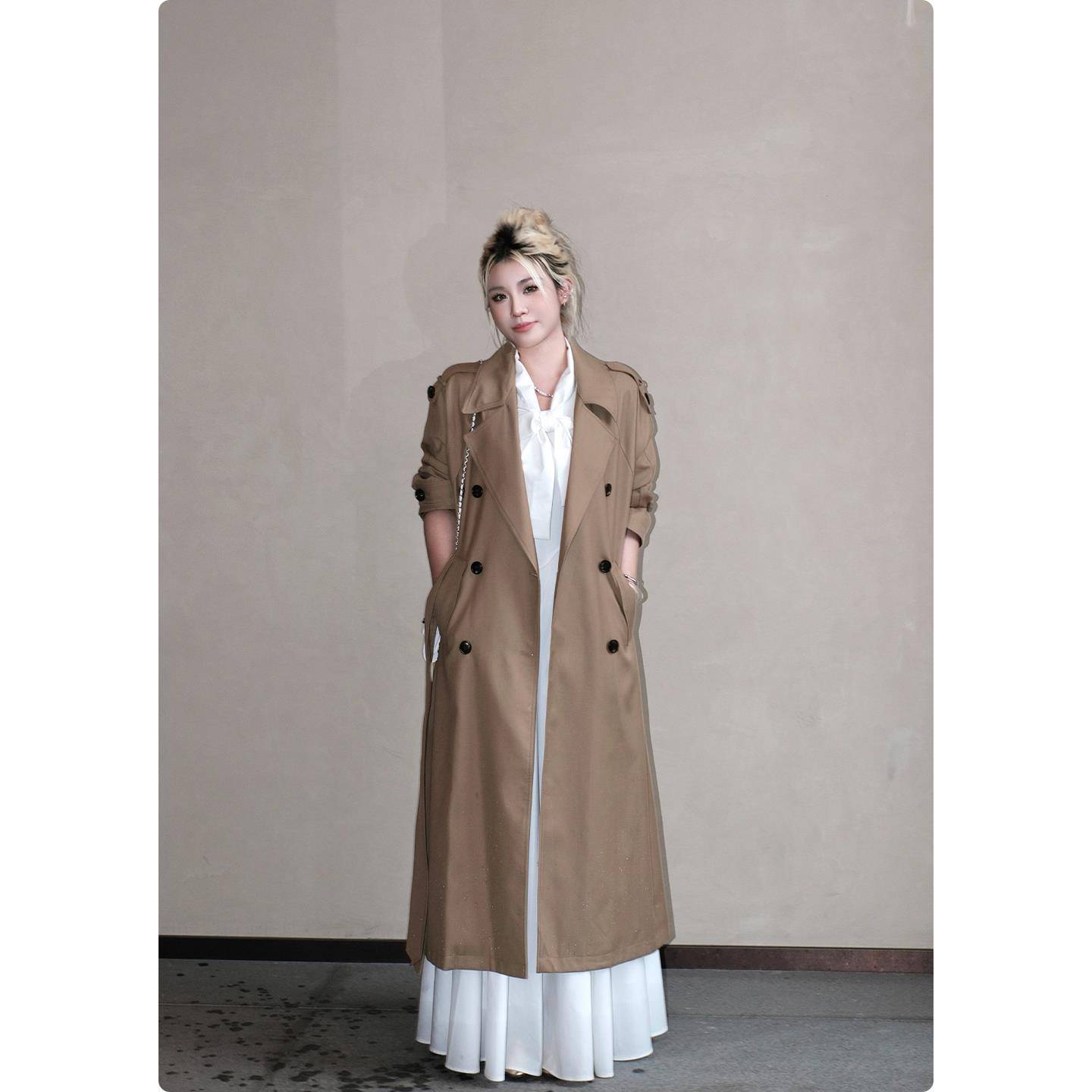 糯米子[千颂伊风衣]外套女春秋季中长款显瘦气质宽松翻领大衣早秋
