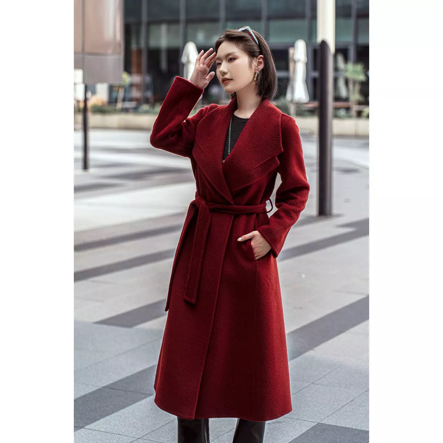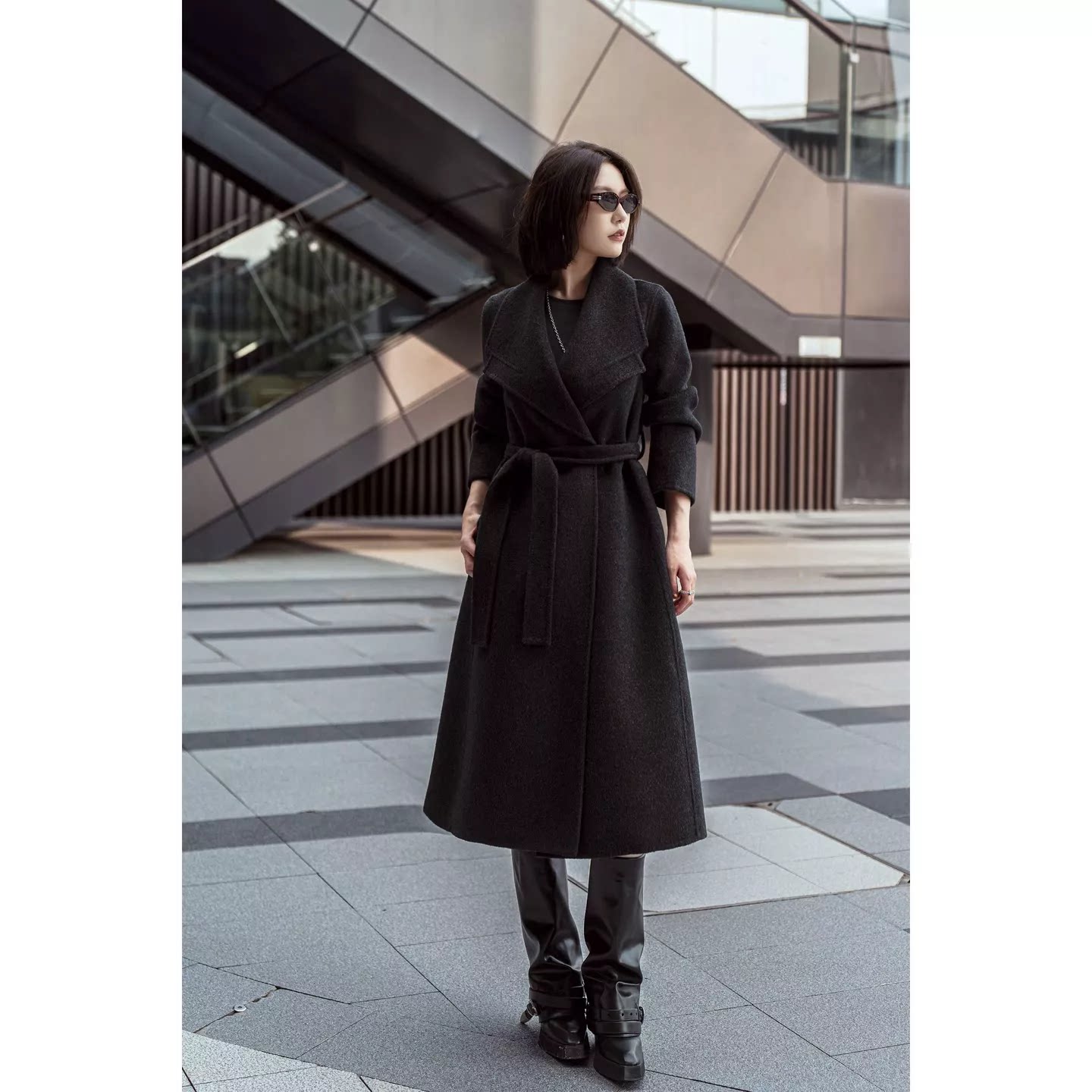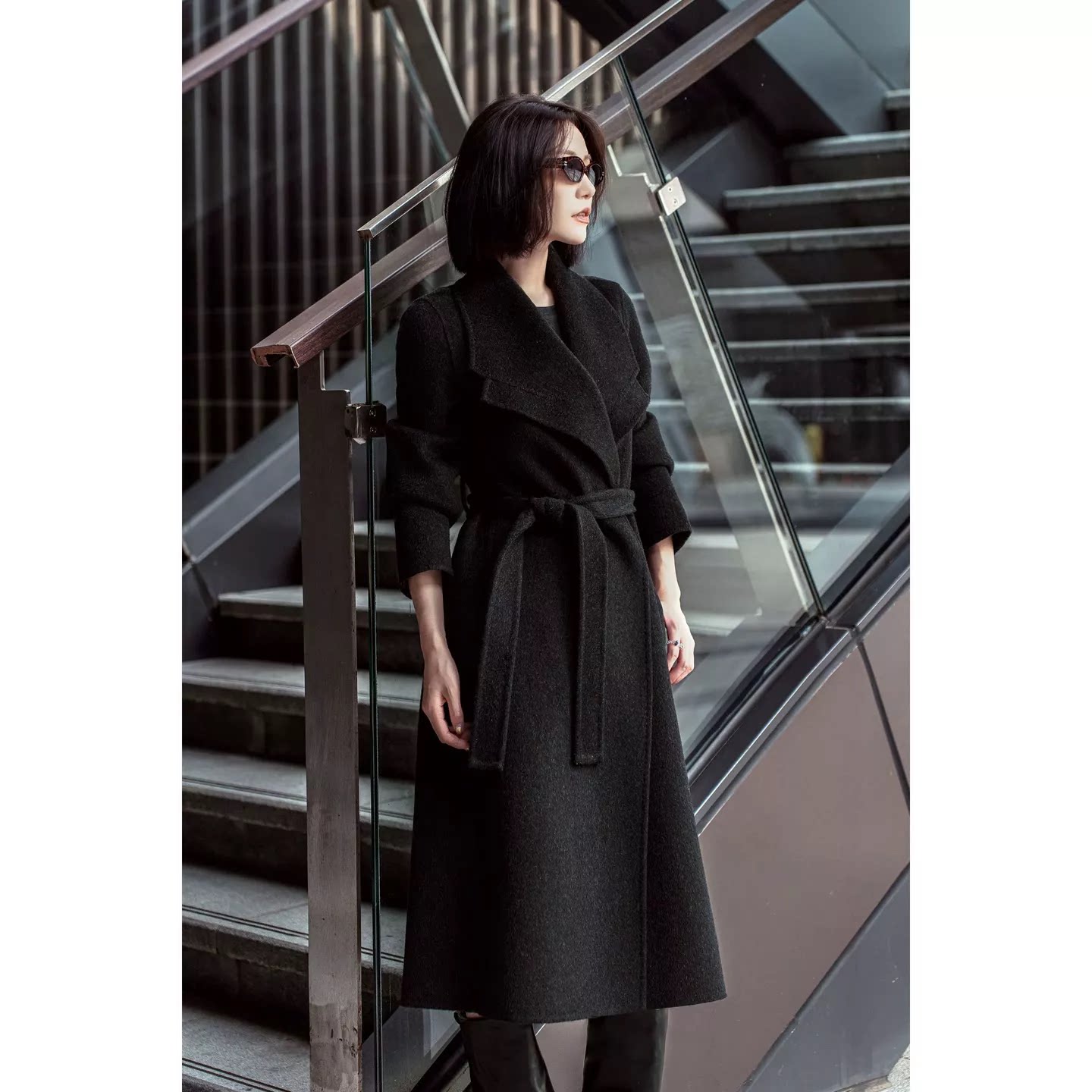 25年韩版赫本风【软黄金&山羊绒】高级感双面羊毛呢大衣女长款系