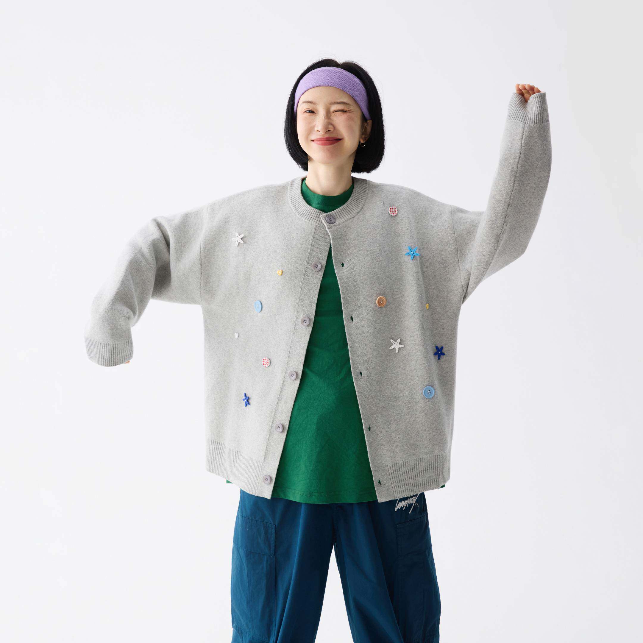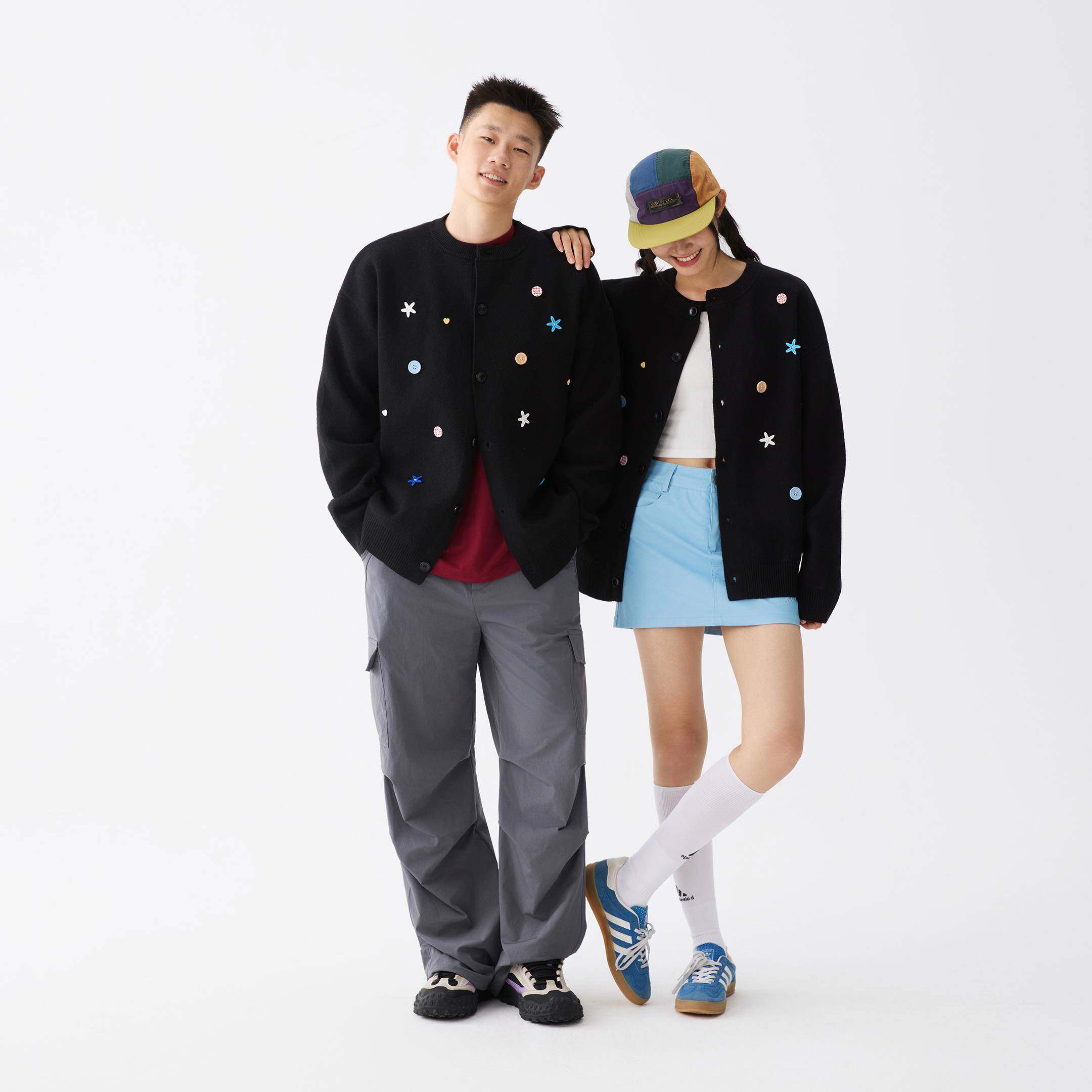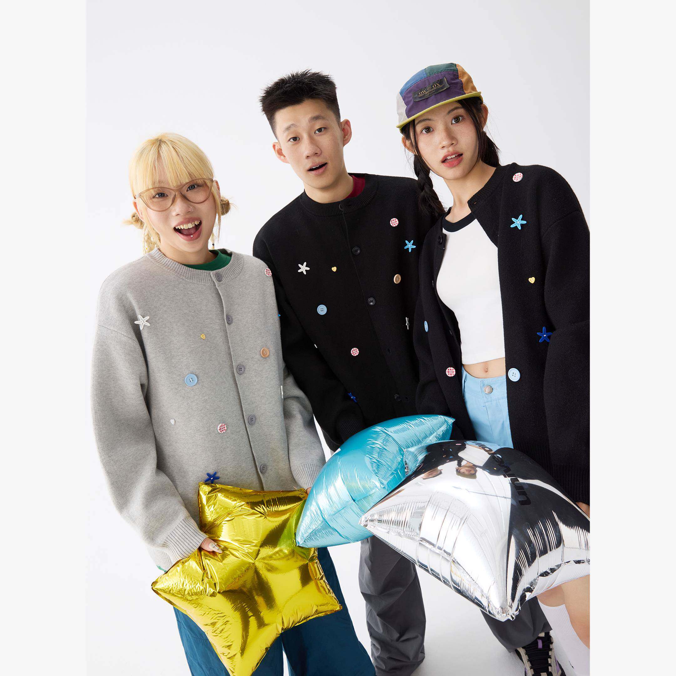 OWOX 设计感趣味纽扣毛衣外套女款秋季单排扣休闲宽松针织开衫男