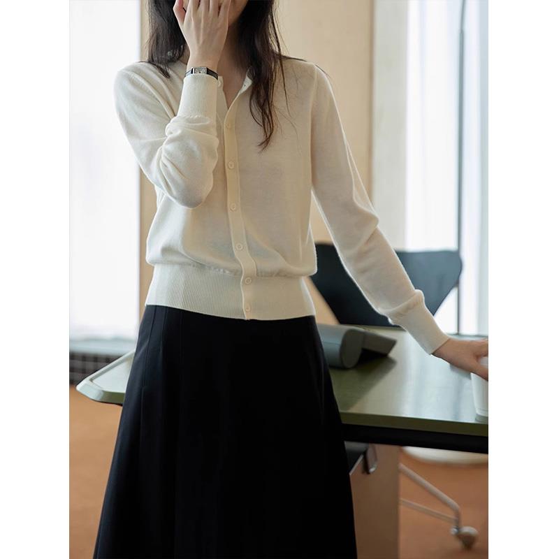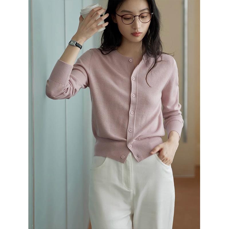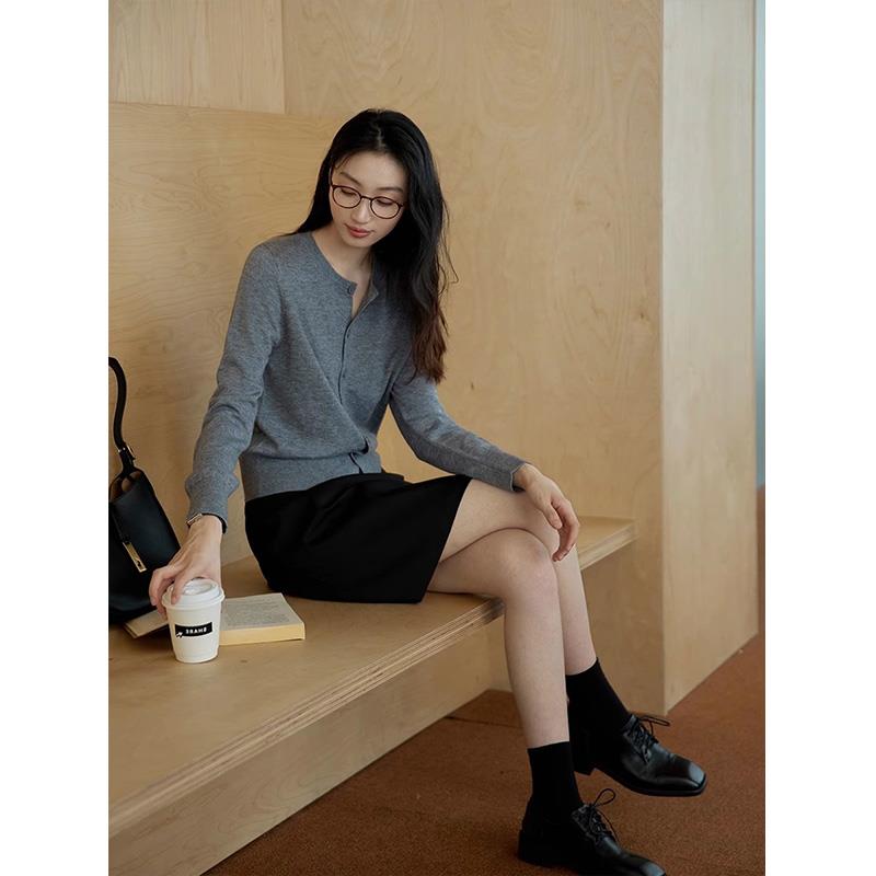 高级气质黑色圆领正肩针织开衫外套女款春秋打底毛衣高腰短款上衣