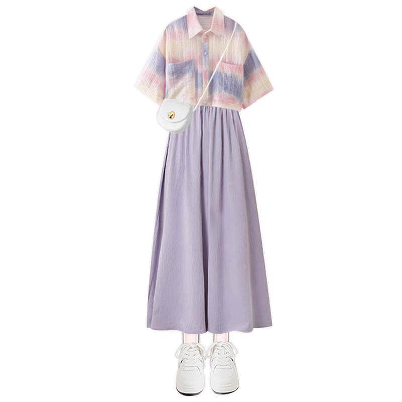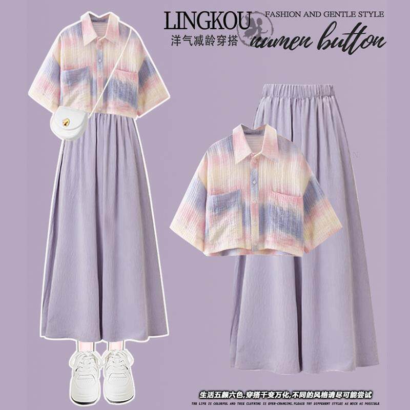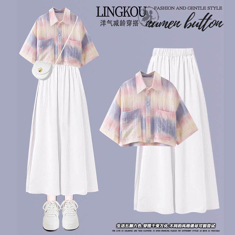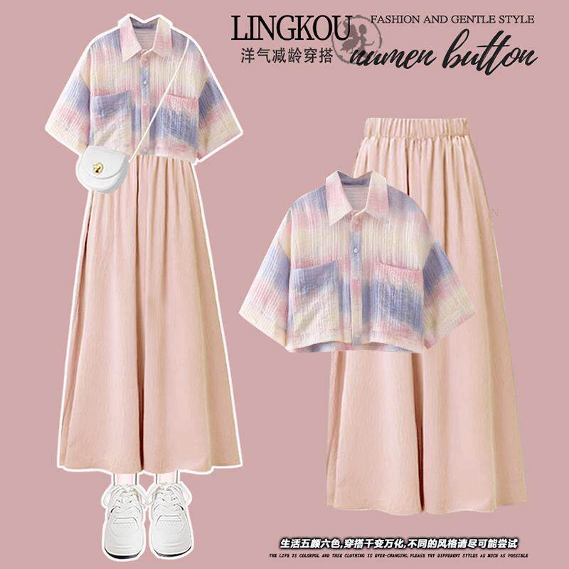 微胖爆款套装小个子夏季新款大码撞色短袖上衣搭配洋气显瘦裙裤女