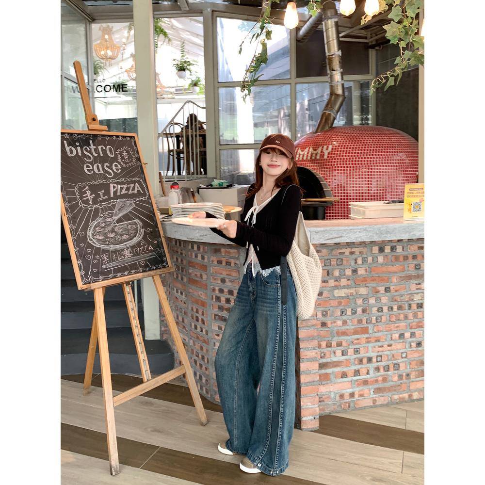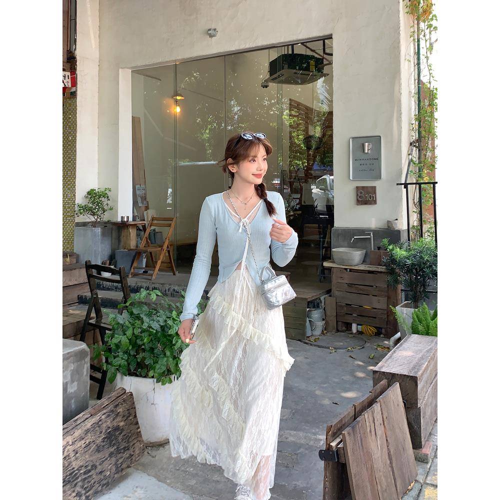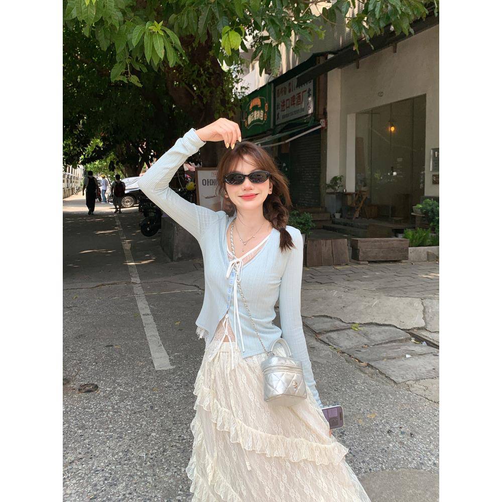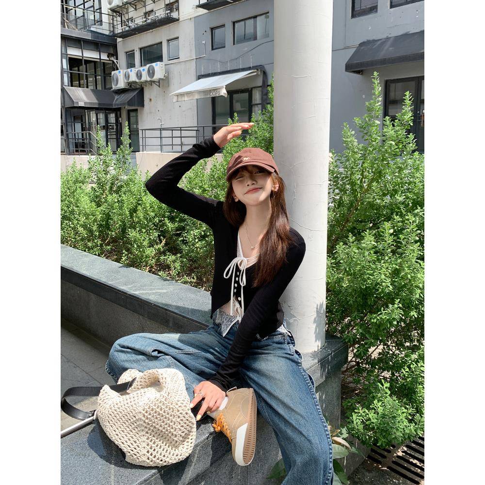 切糕自制小个子初秋新款上衣女设计感黑色拼接长袖T恤内搭针织衫