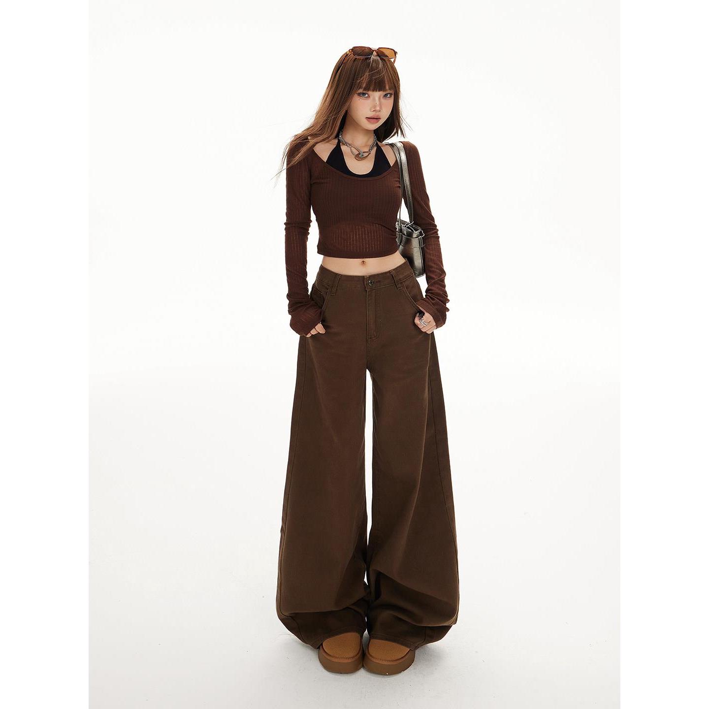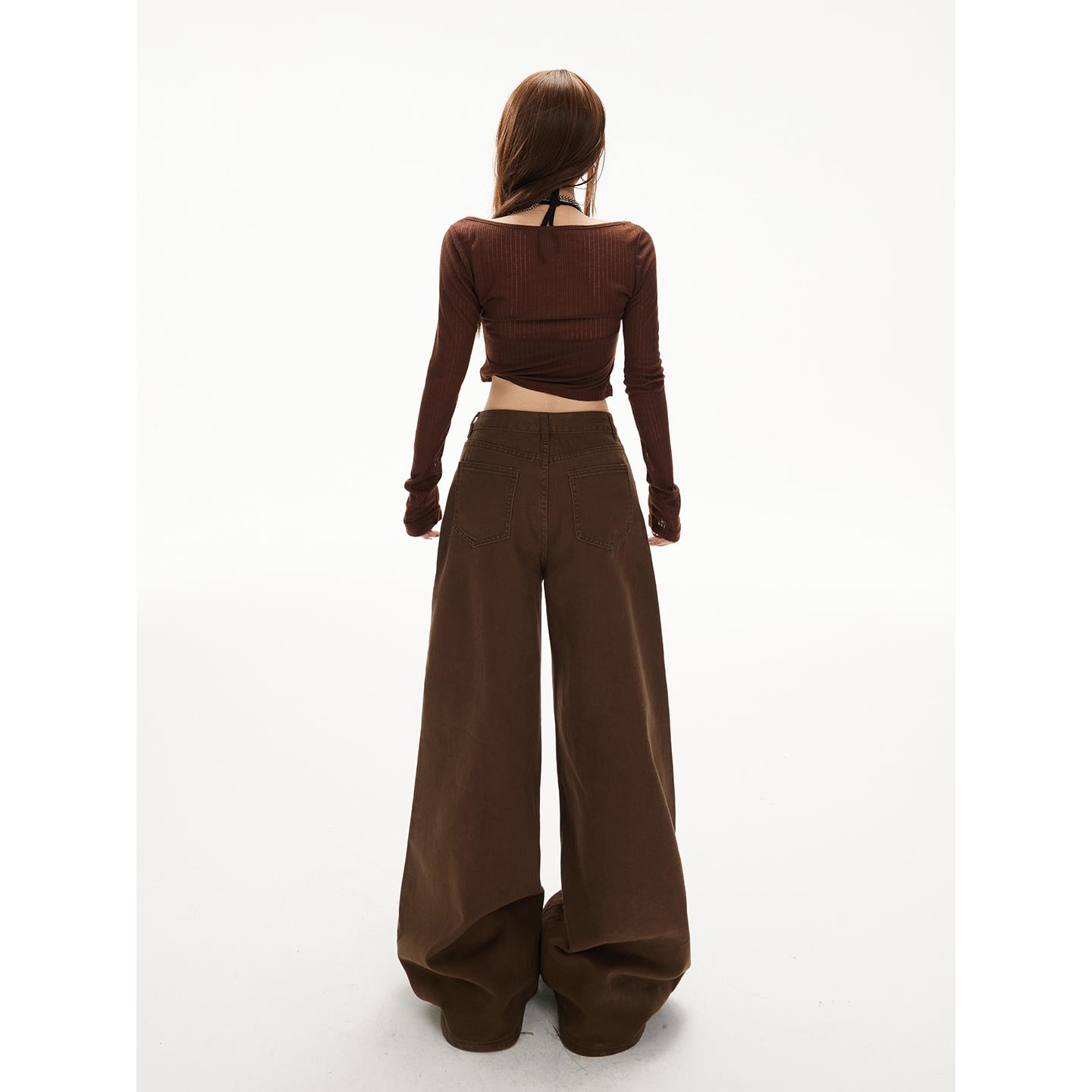 吴眉毛的衣橱覆古棕色美拉德宽松阔腿裤女秋冬新款垂感直筒牛仔裤