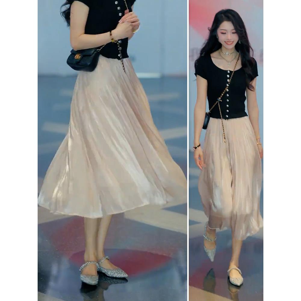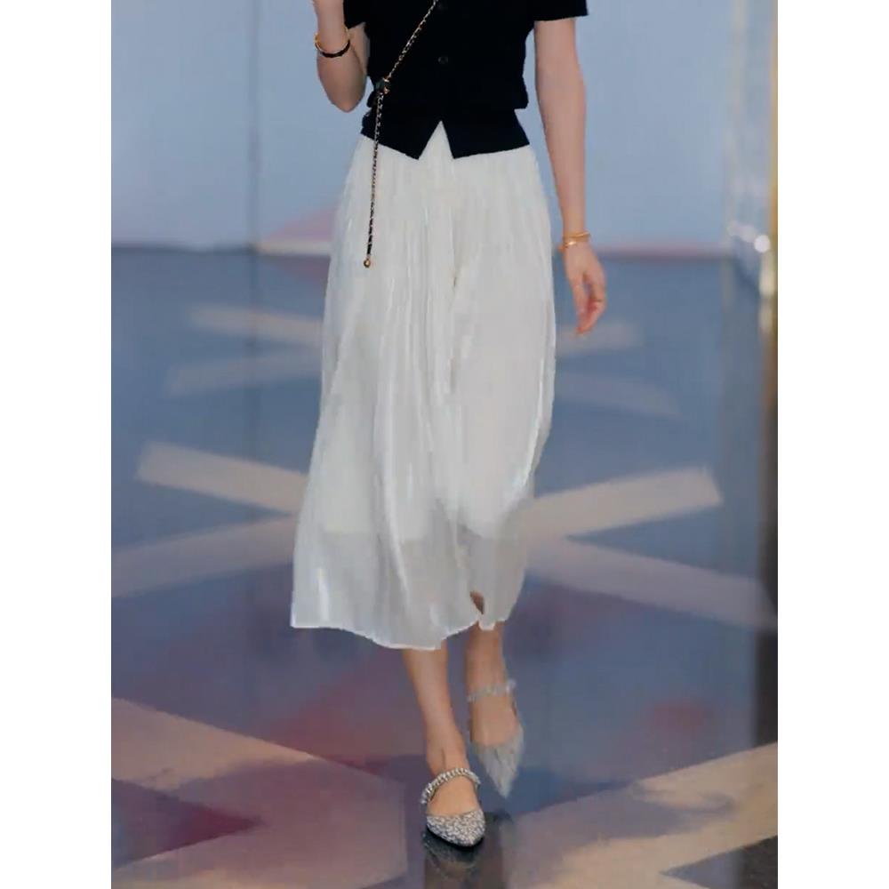 高级流光纱半身裙女春夏季2025新款琉璃纱大摆中长垂感a字百褶裙
