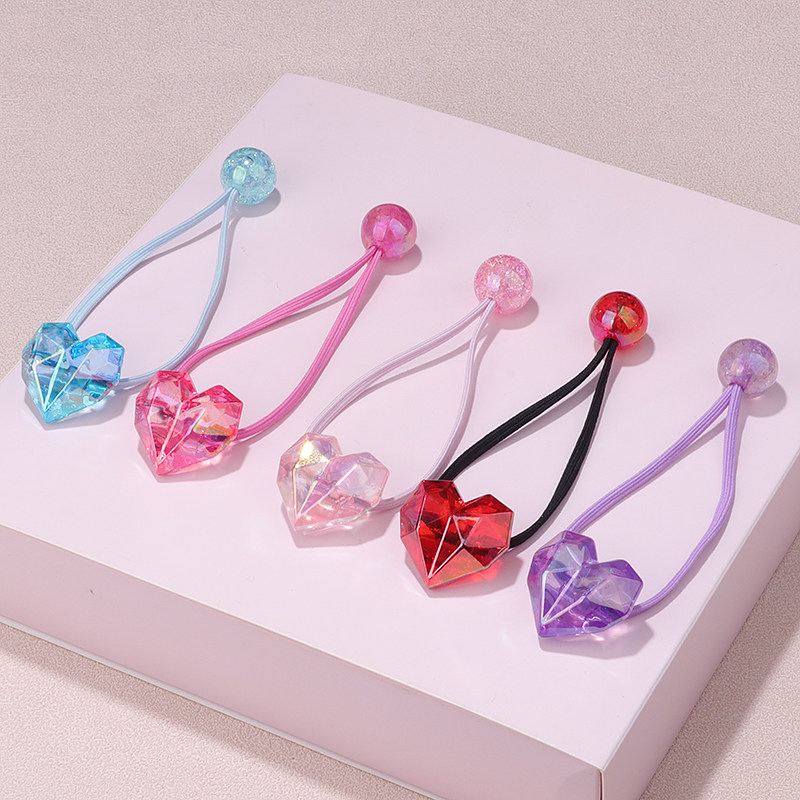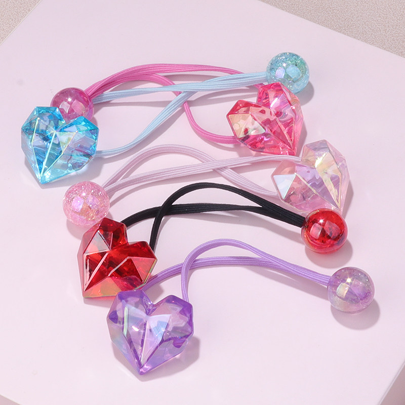 儿童扎高马尾发绳弹力不伤发亮晶晶爱心皮筋珠珠头绳糖果色发圈女