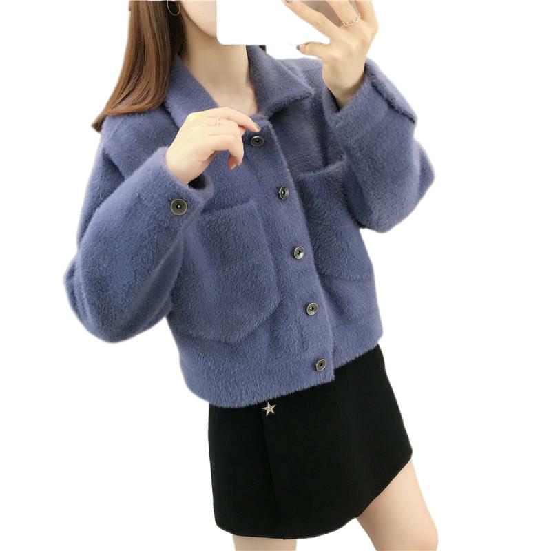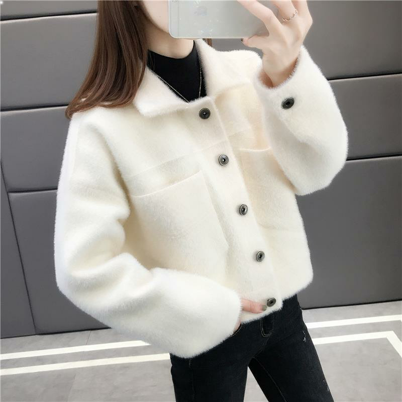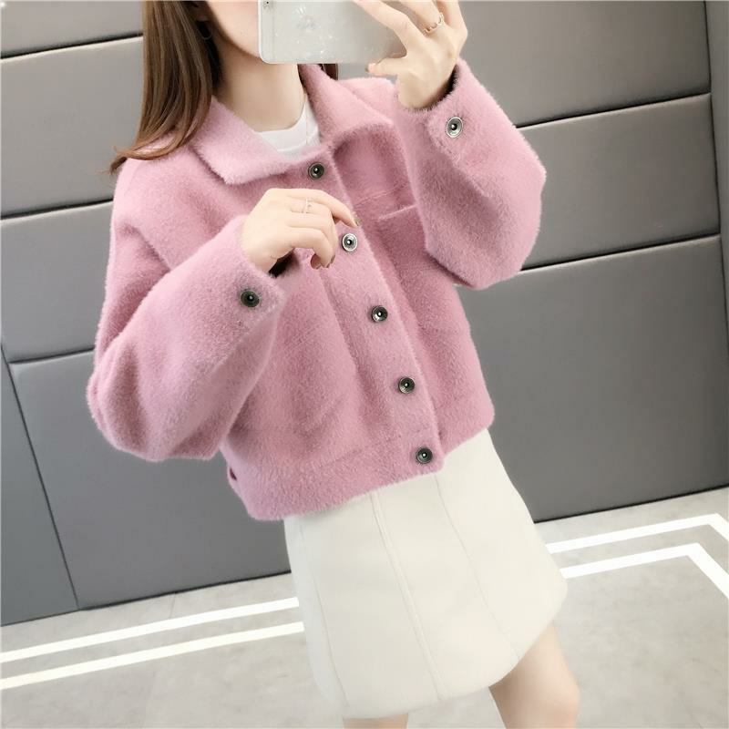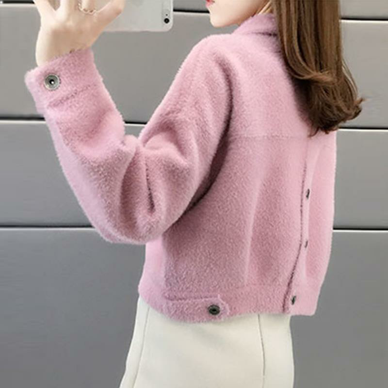 仿外衣女小个子短款外套新款女秋冬加厚毛衣女开衫上衣简约百搭范