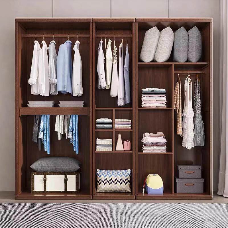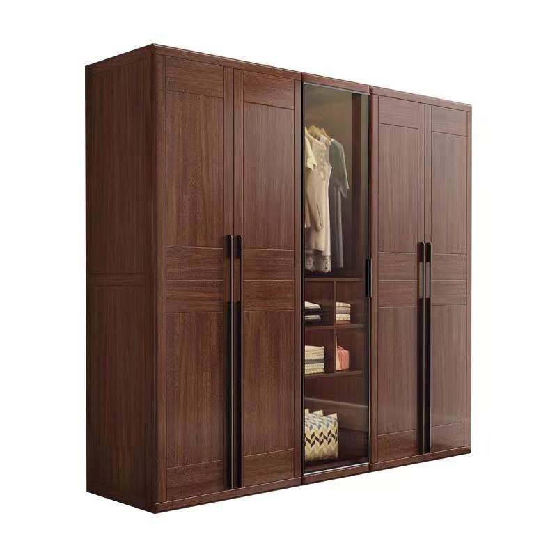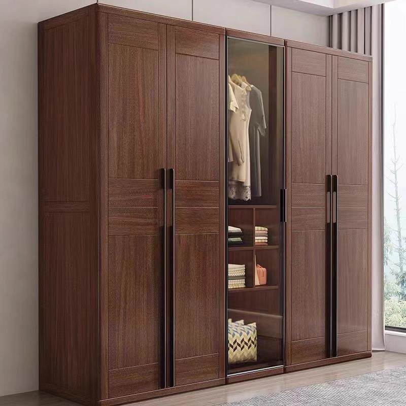 胡桃木衣柜家用卧室实木大衣橱北欧简约原木双门四门收纳衣柜组合