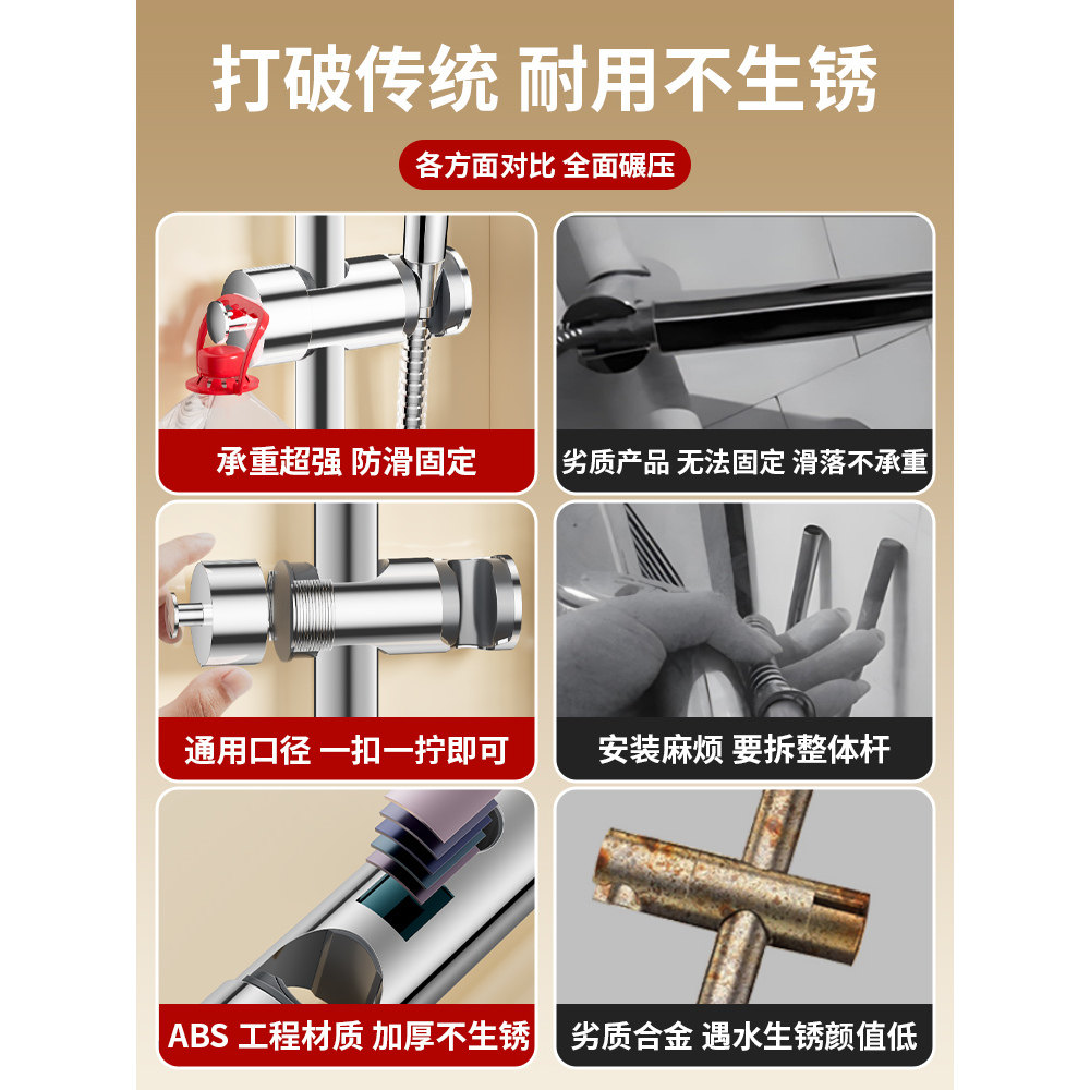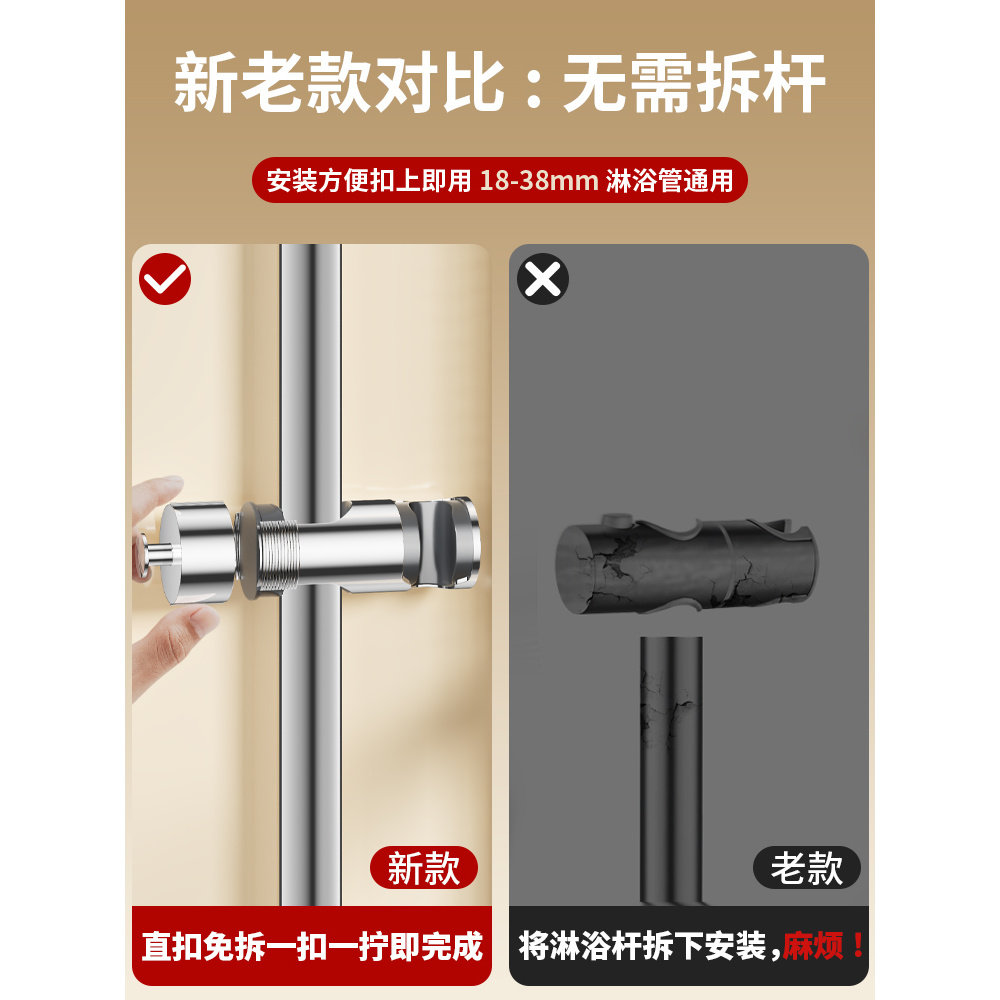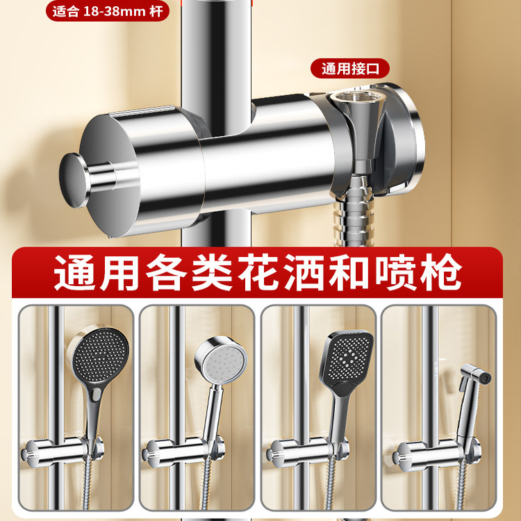 免拆管花洒中叉支架升降杆固定座免打孔淋浴杆喷头可移动调节滑套