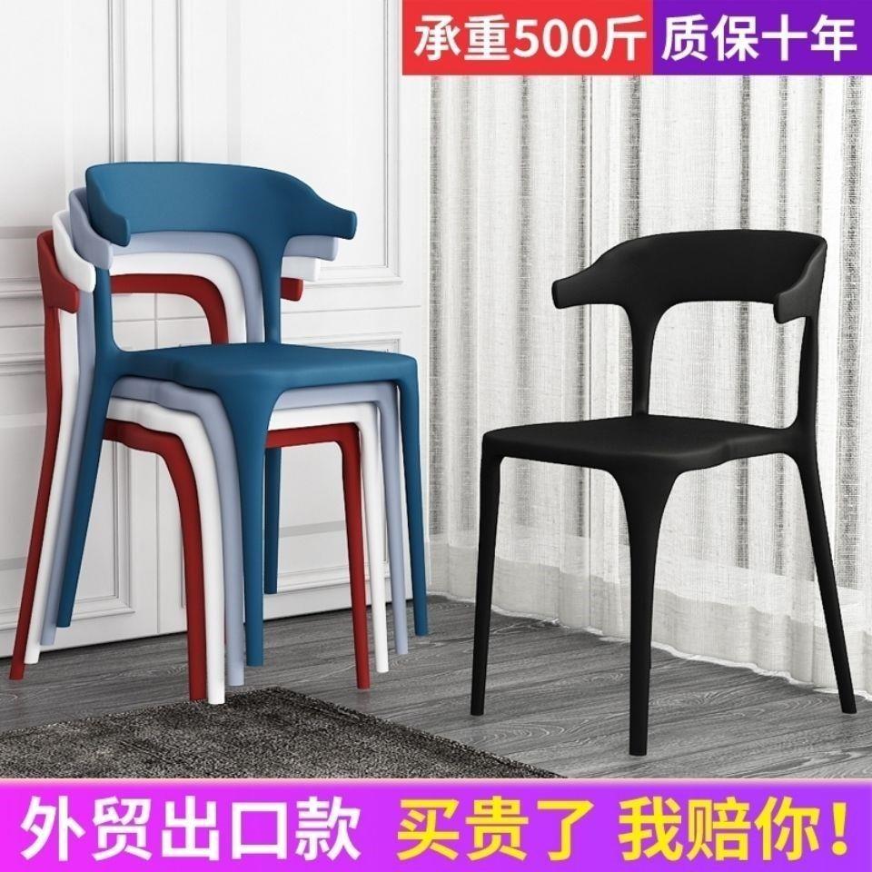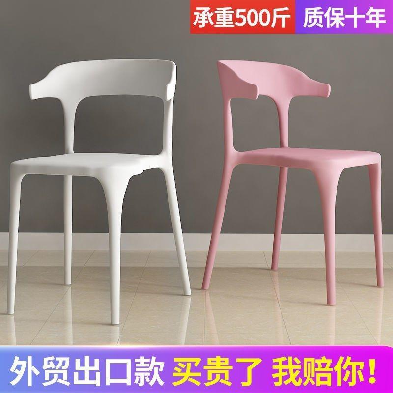 椅子塑料北欧简约家用牛角靠背椅凳子成人加厚餐椅休闲洽谈餐厅椅