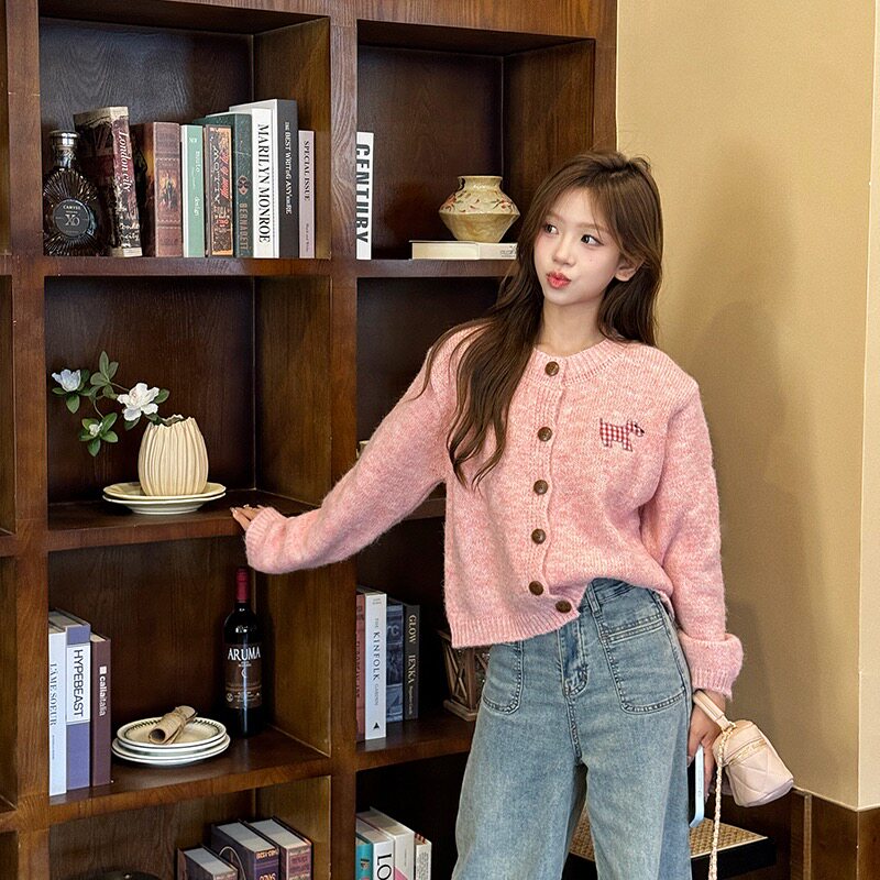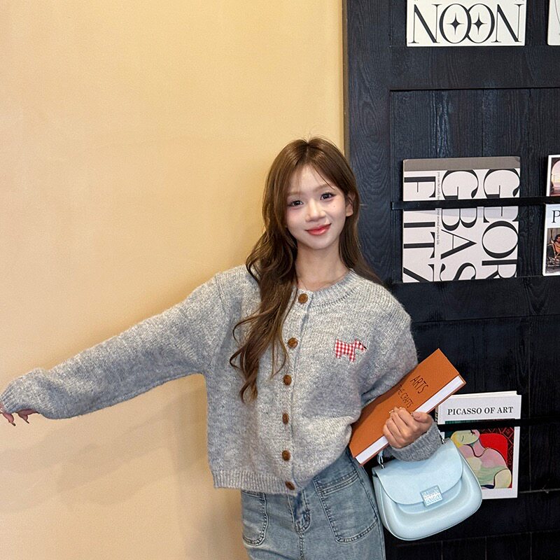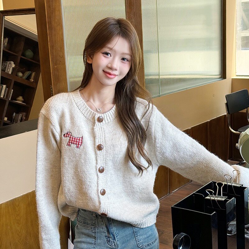 小狗贴布糖果色甜美开衫毛衣2025秋季新款外套多色森女