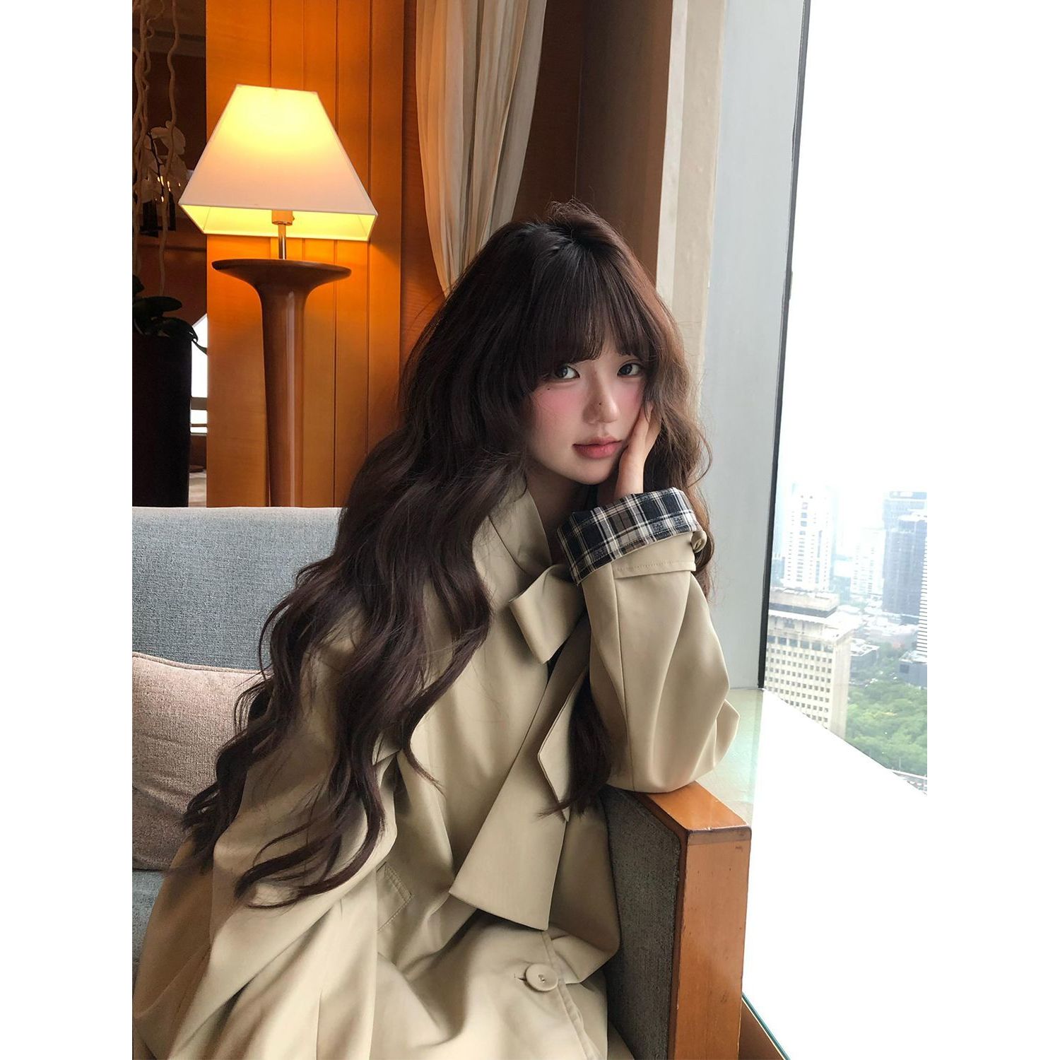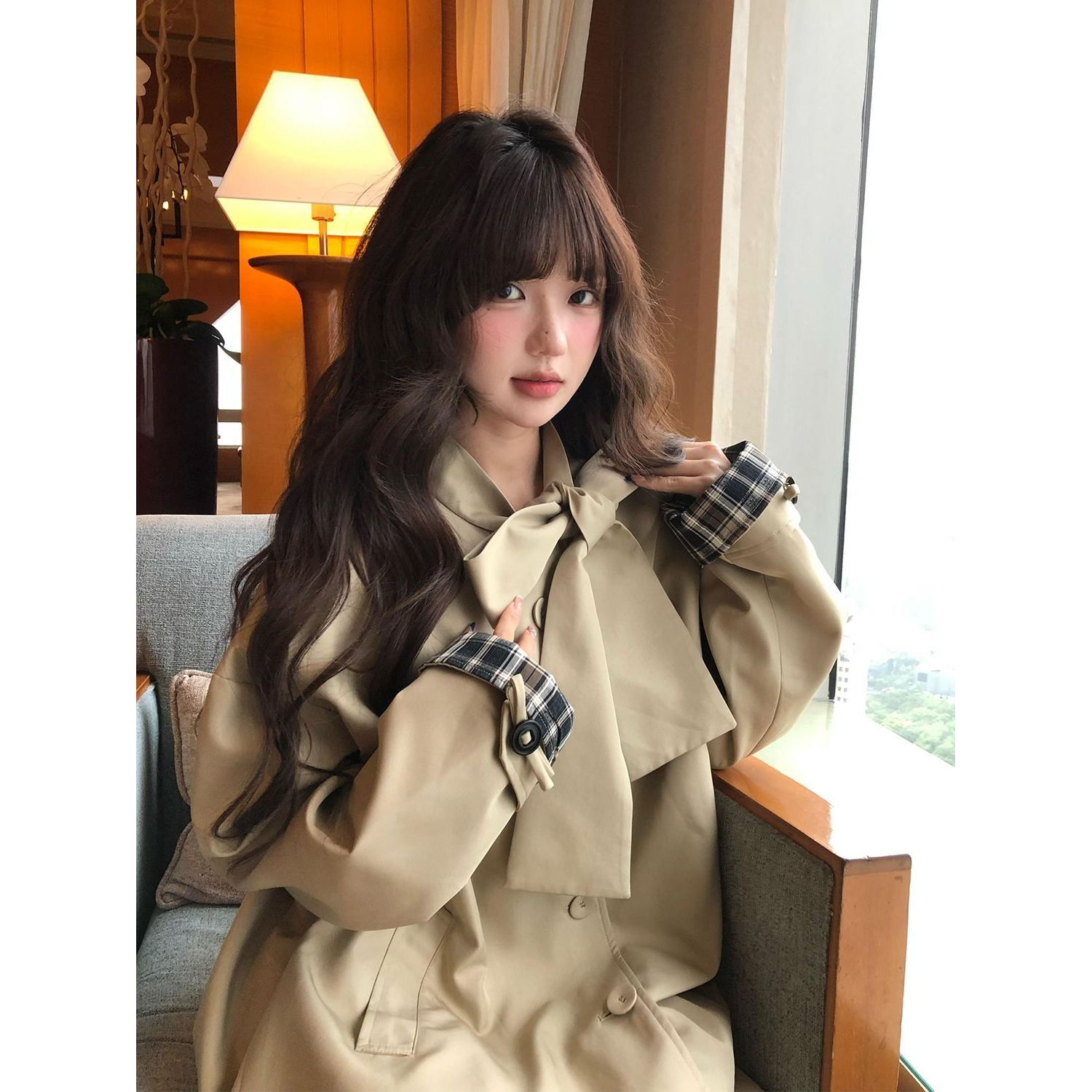 秋日序曲 韩系复古卡其色风衣女设计感可爱蝴蝶结格纹拼气质外套