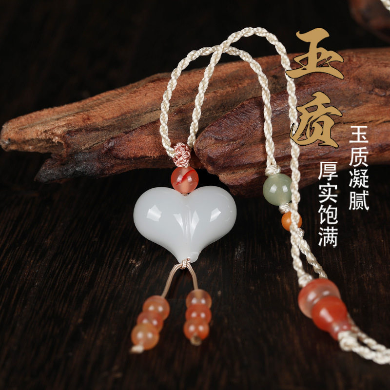 唐今玉天然和田玉玉器工厂店青海料老料白玉色玉石爱心吊坠挂件