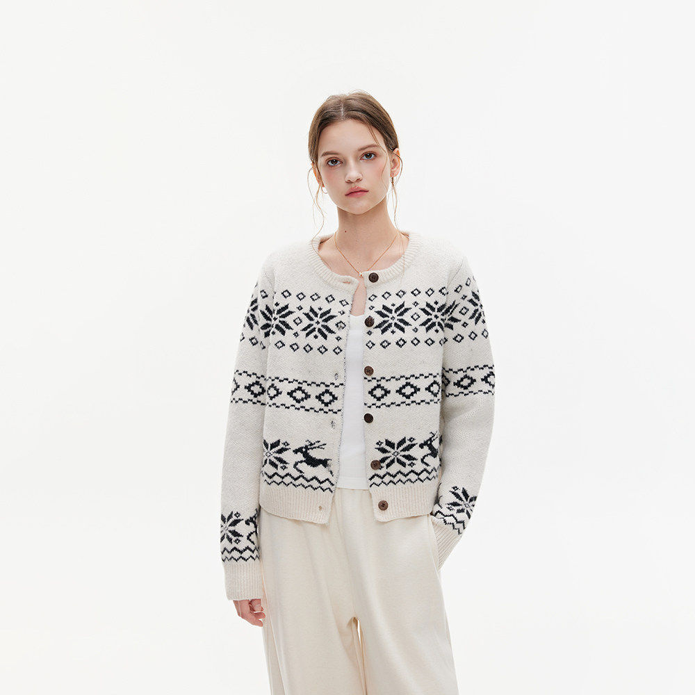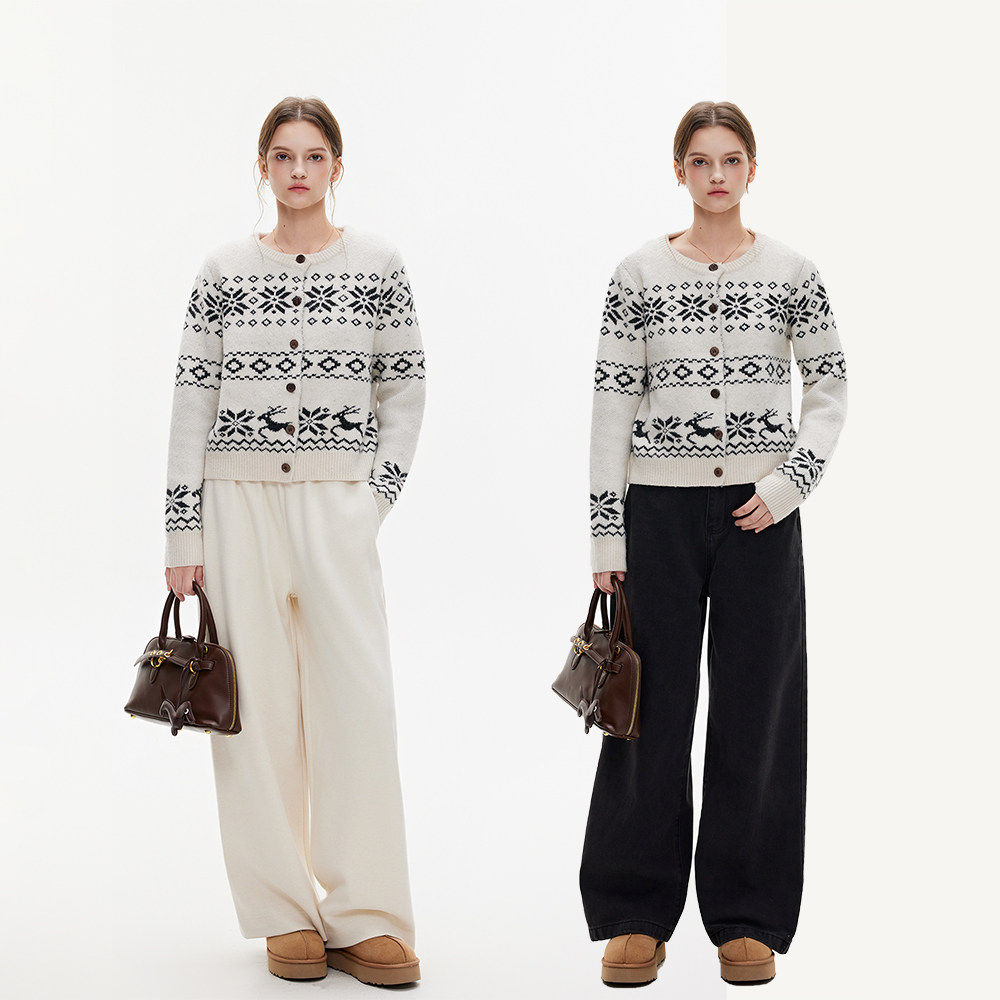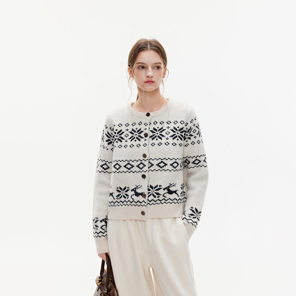 Azmi复古费尔岛针织开衫外套女秋冬2025新款宽松显瘦休闲百搭毛衣