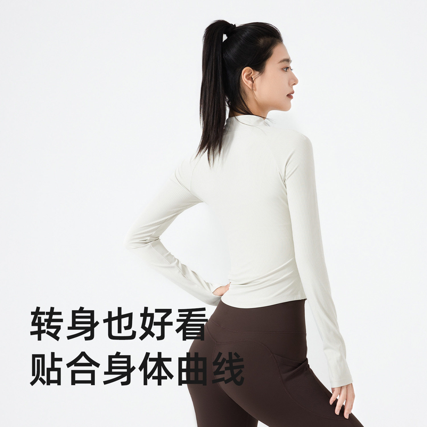 肥小棉品牌新款条纹高低领显瘦修身运动外套跑步健身瑜伽外套女生
