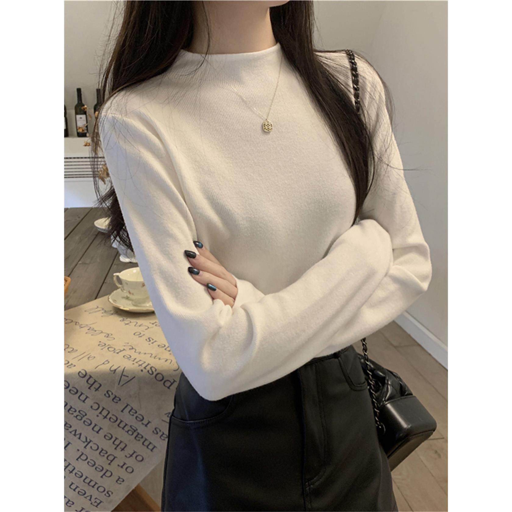 超软半高领温柔白色针织打底衫女秋冬内搭保暖毛衣慵懒巨好看上衣