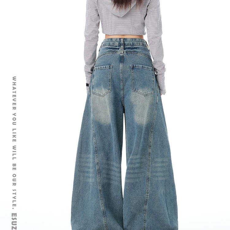 首页> 女装> 美式水洗弯刀牛仔裤女夏季新款高腰设计感宽松垂感阔腿拖地大脚裤