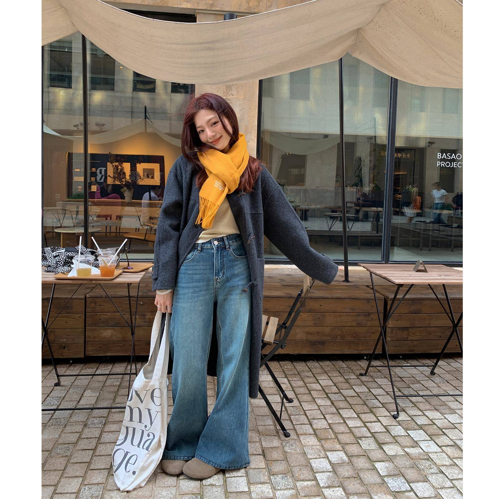 西西里安 浅尝四面弹~遮胯微喇牛仔裤小个子四季可穿复古显瘦长裤