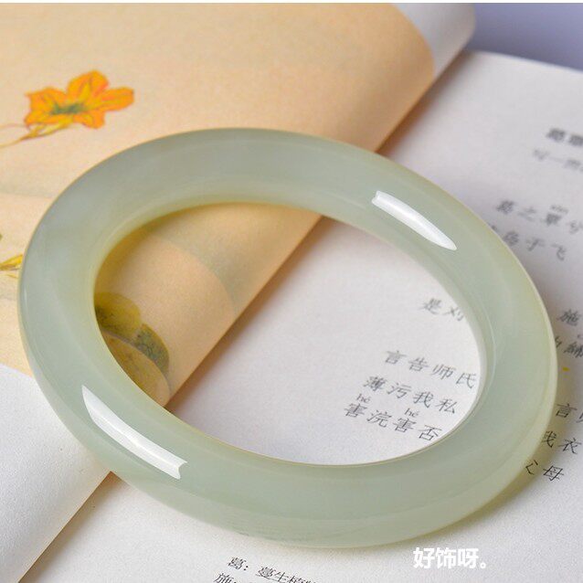 首页> 配饰> 和田玉晴水手镯青白玉手镯子女款胖圆条镯子天然新疆和田玉石