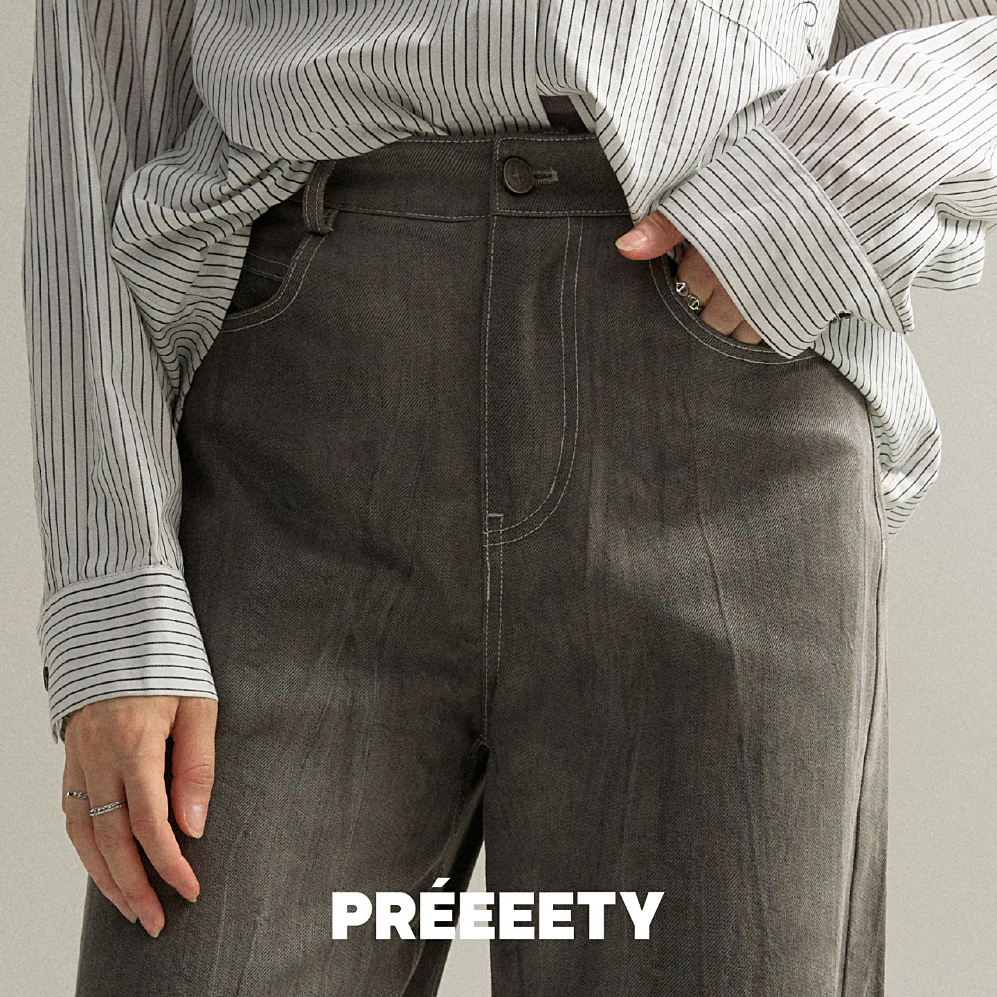 PREEEETY2025新款牛仔裤女直筒裤百搭显瘦垂感做旧长裤宽松显瘦