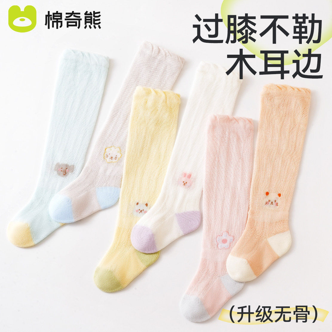 婴儿长筒袜夏季薄款棉空调袜新生儿宝宝夏天防蚊网眼长袜过膝袜