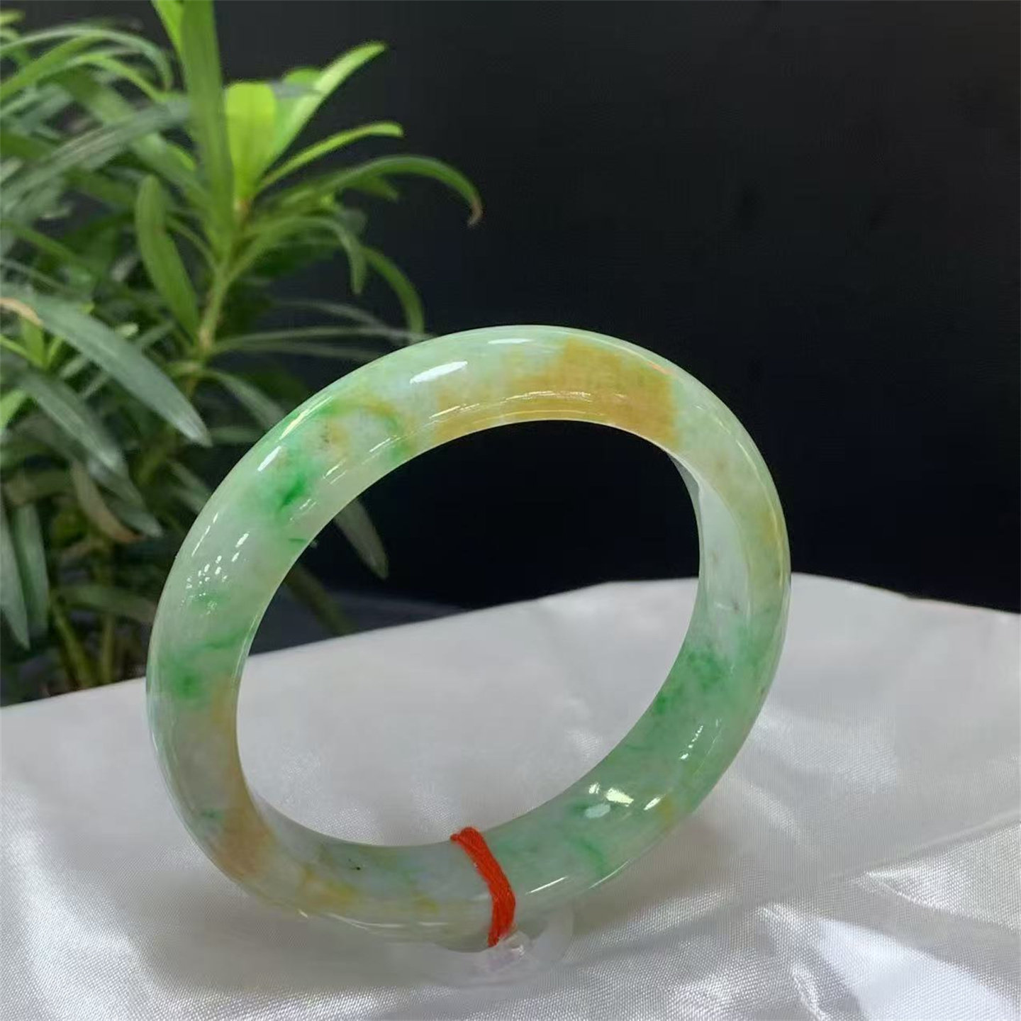 60圈口天然A货翡翠黄加绿大圈口手镯 正品有证书