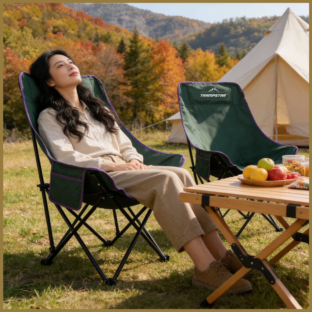 TRAMPSTAR山标-【不可调节】升级高背月亮椅户外折叠椅露营便携椅