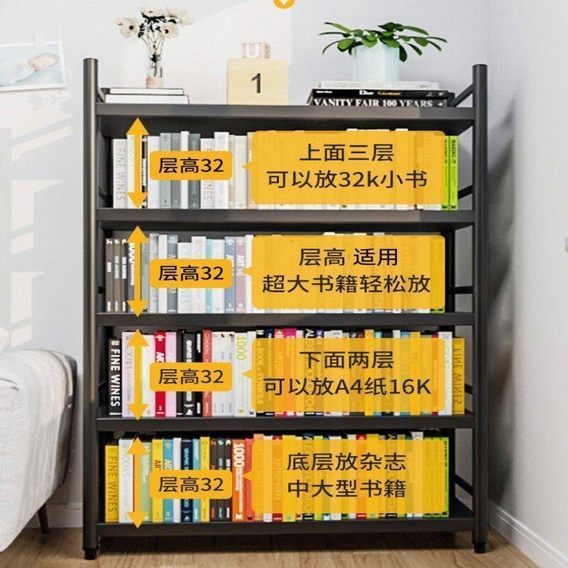 钢制围栏书架落地多层货架收纳客厅书柜厨房多功能宿舍卧室储物架