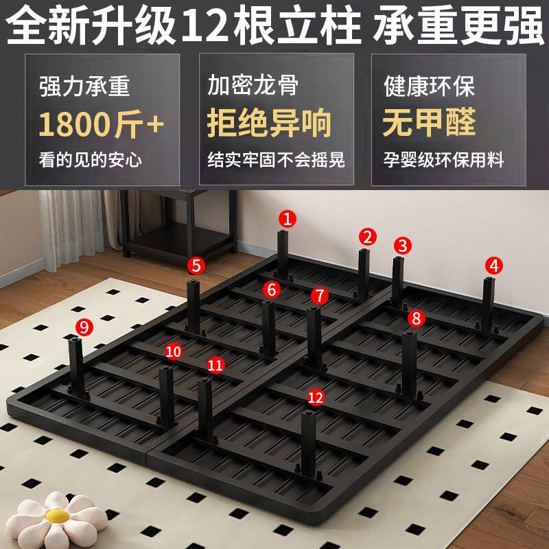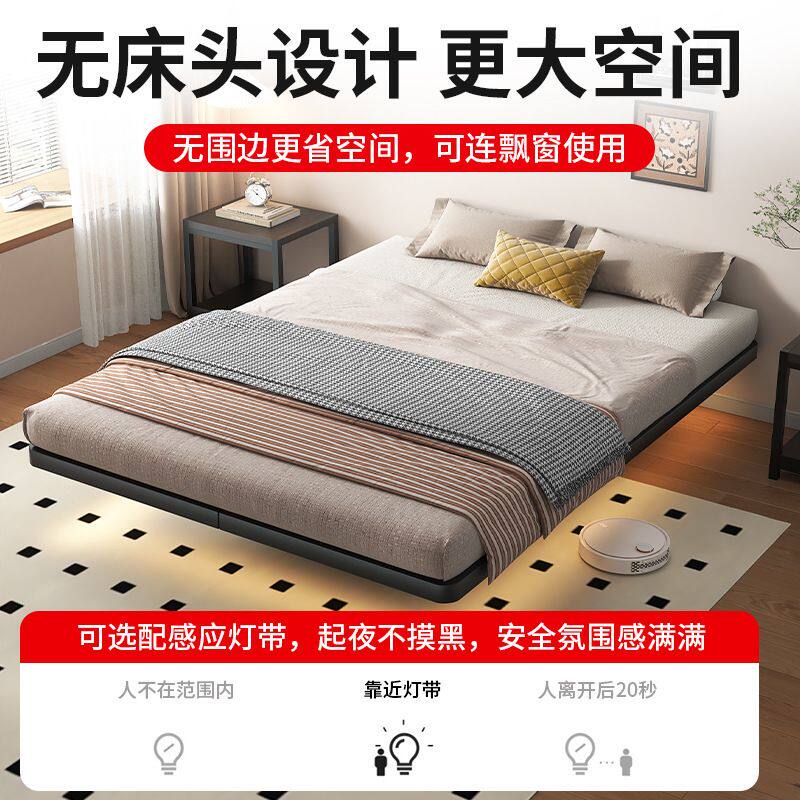 无床头悬浮床碳素钢排骨钢架床家用卧室齐边无靠背铁艺床悬空床架