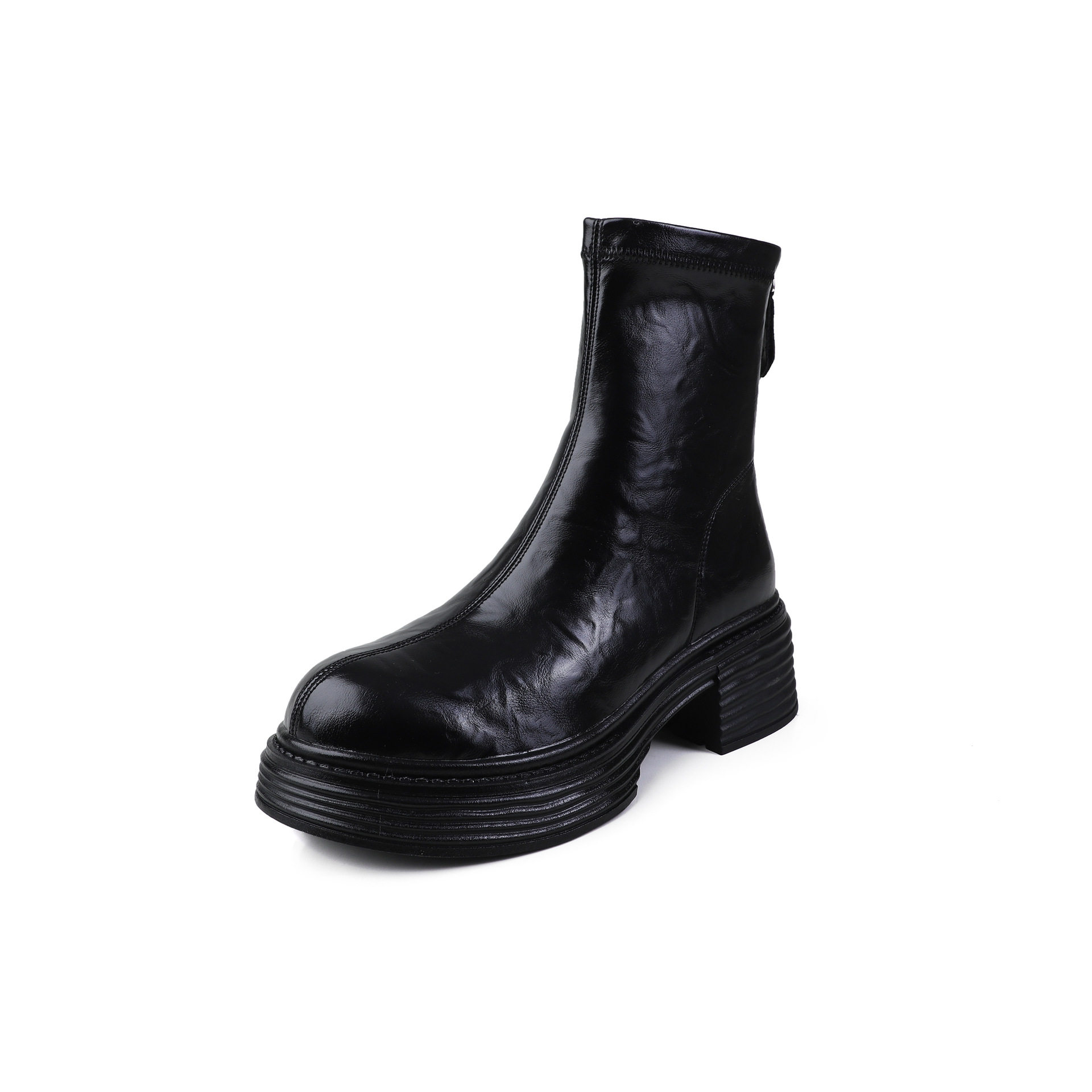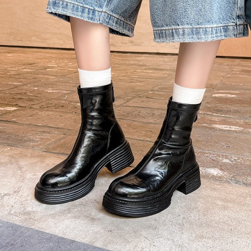 松糕厚底马丁靴女圆头小众设计感小个子短靴粗跟百搭高级感瘦瘦靴