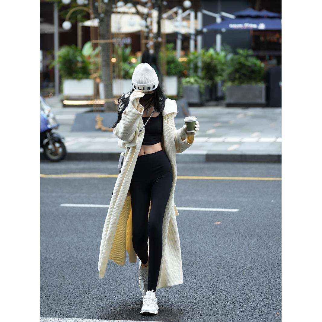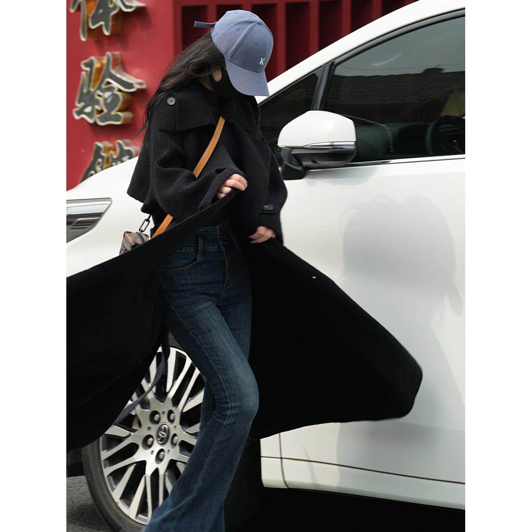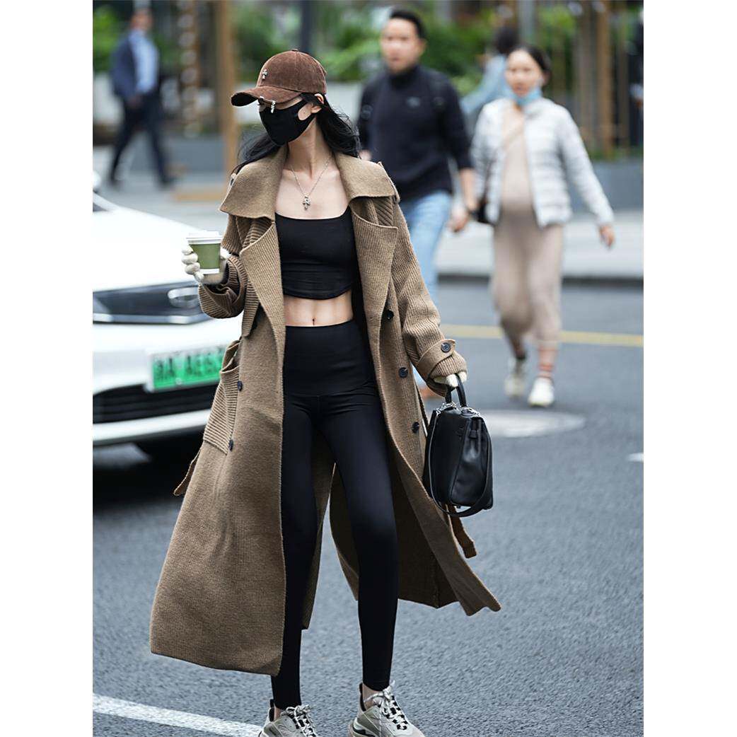 Lna7xi 高级感款风衣女长秋季8090设计感宽松慵懒风毛u针衣织开衫