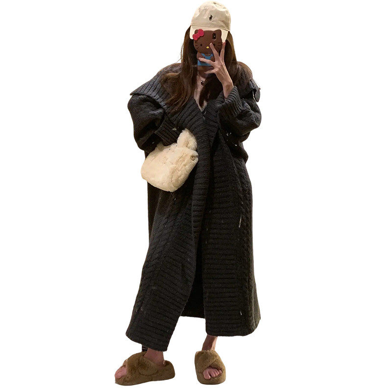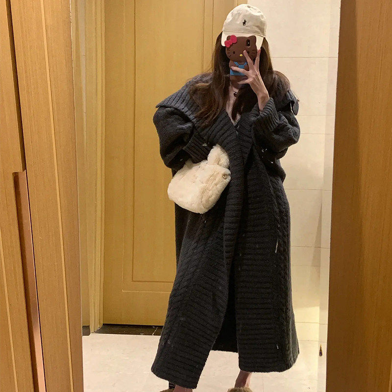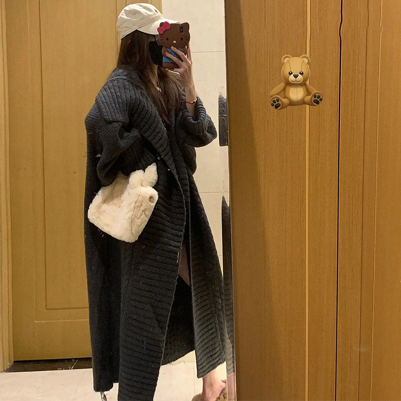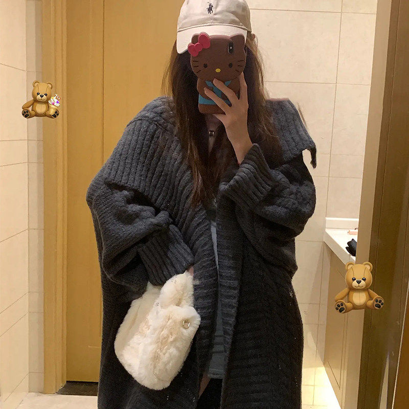 法式慵懒风灰色中长版毛衣外套女春秋季2025新款宽松外穿针织开