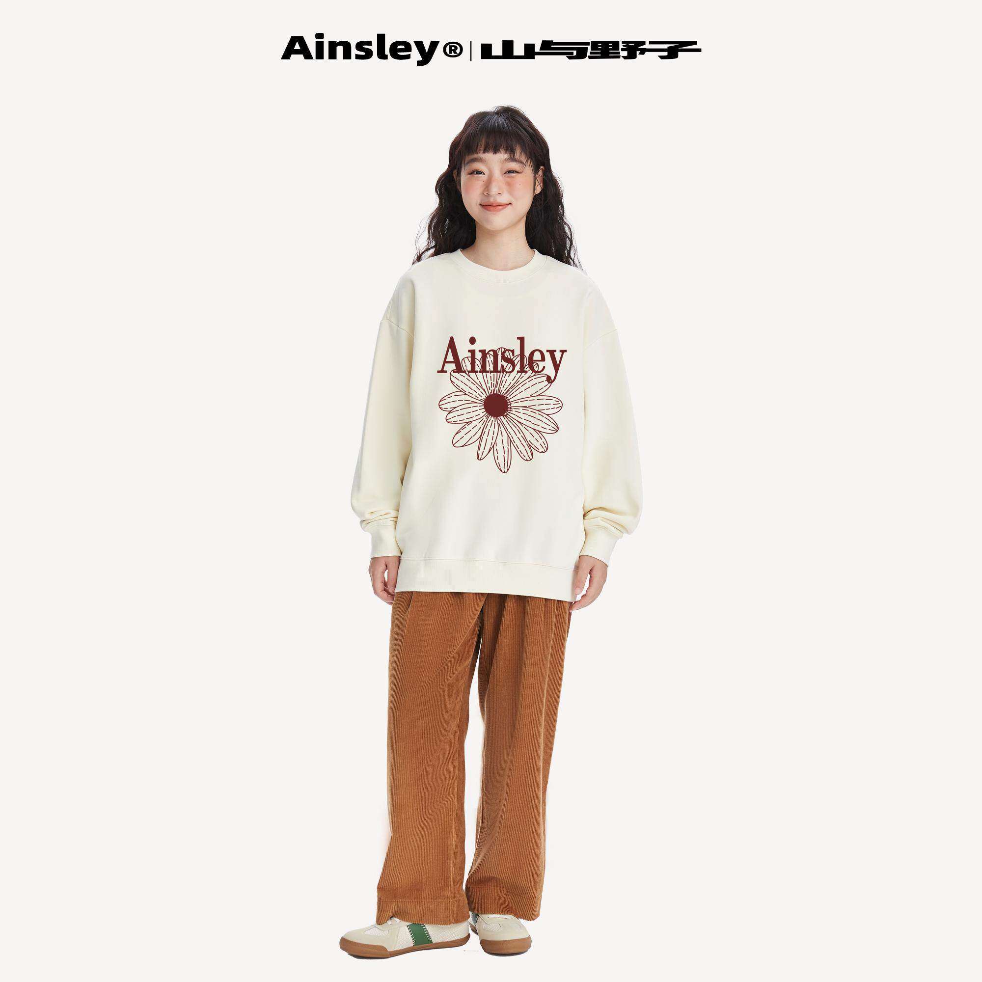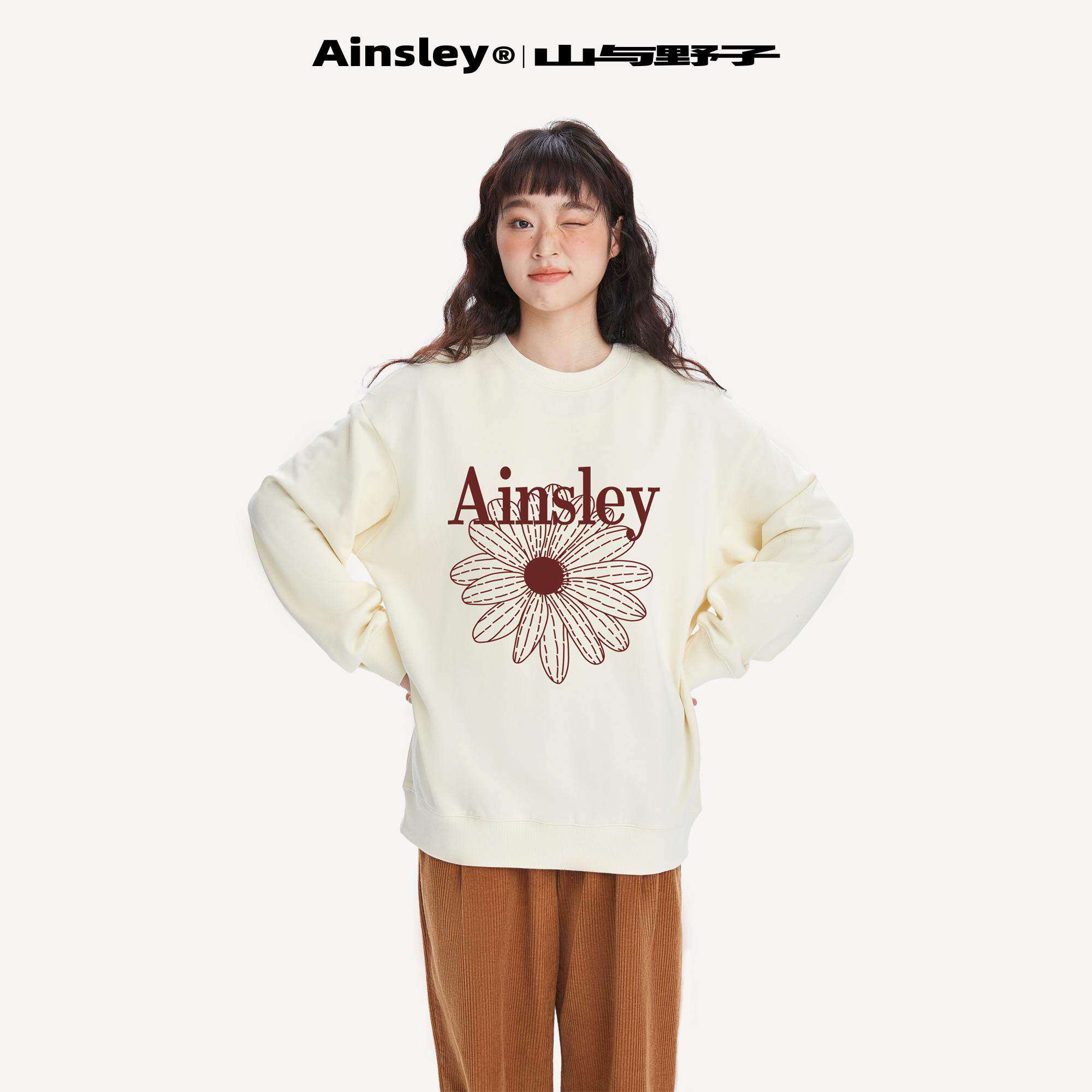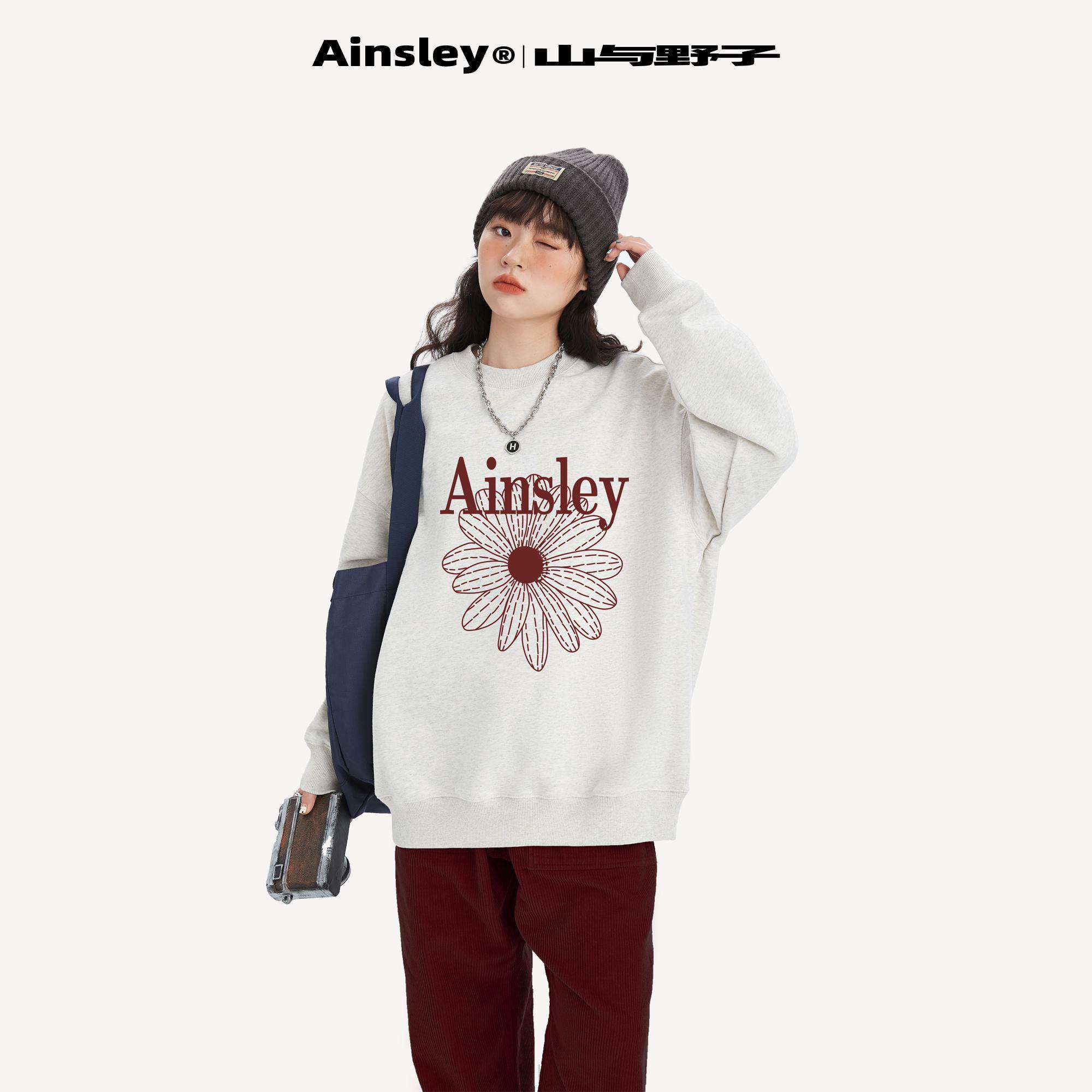 山与野子 韩系红色小雏菊卫衣女加绒冬季宽松显瘦重磅圆领上衣