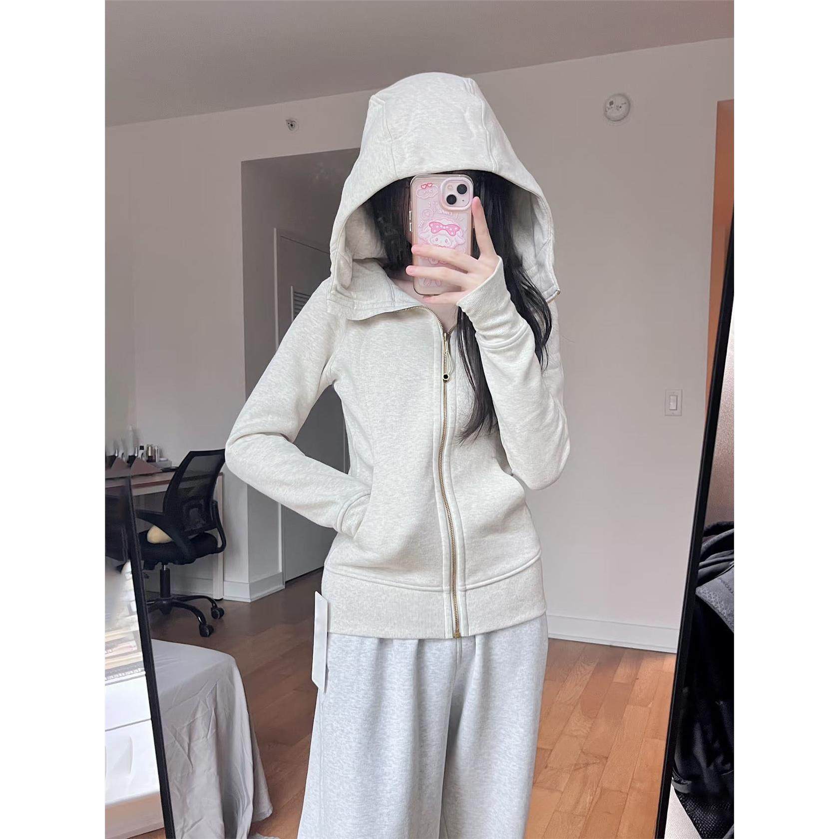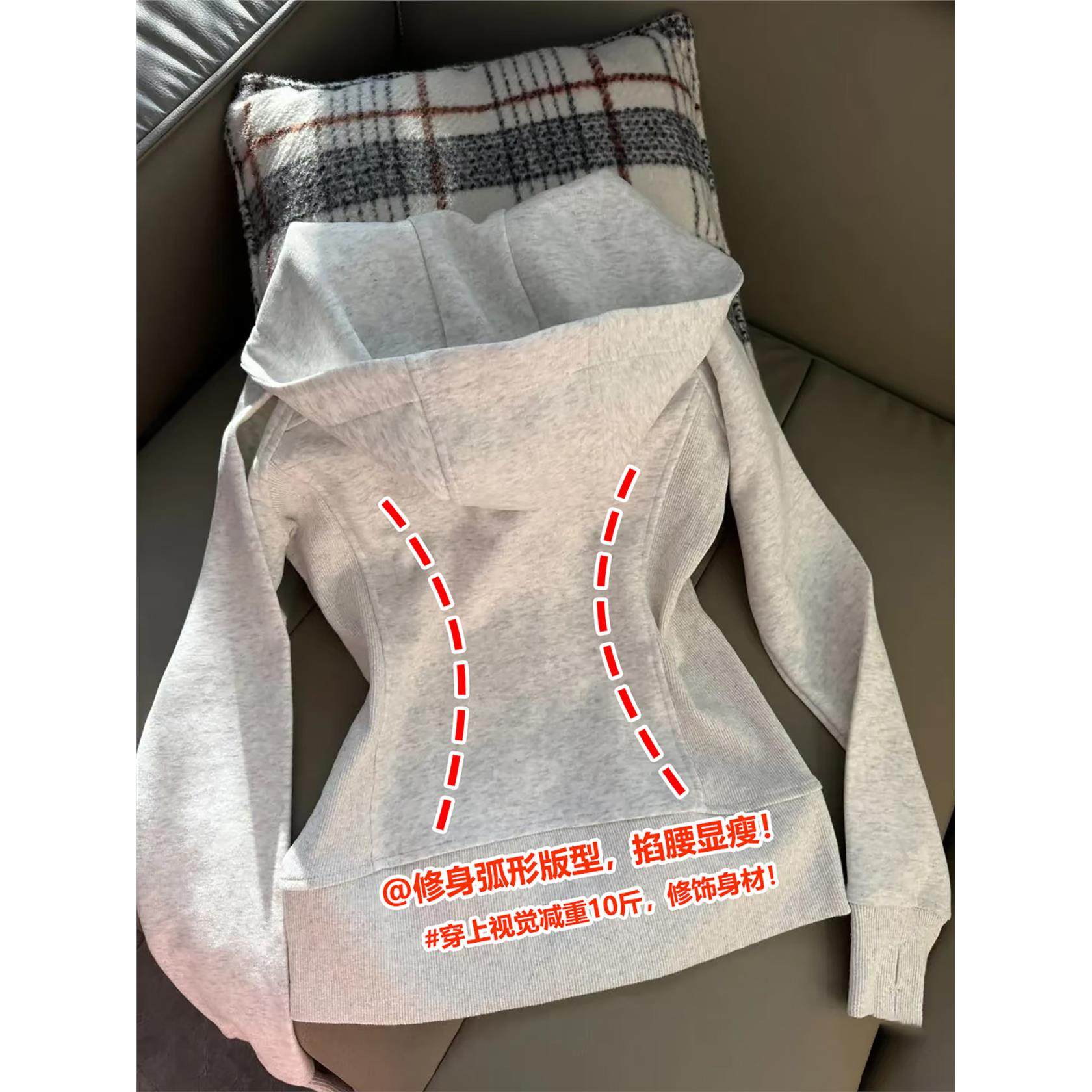【牛货】LULU ZGLY露露修身版春秋冬女金拉炼连帽衫加绒卫衣外套