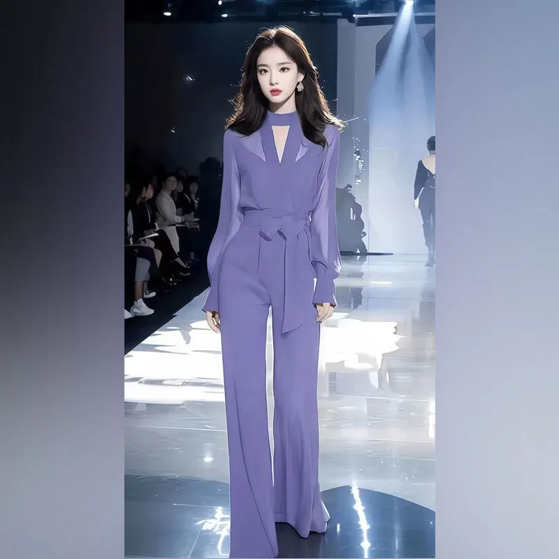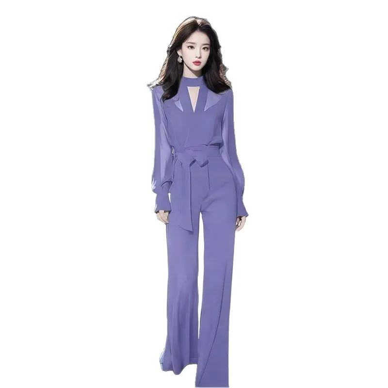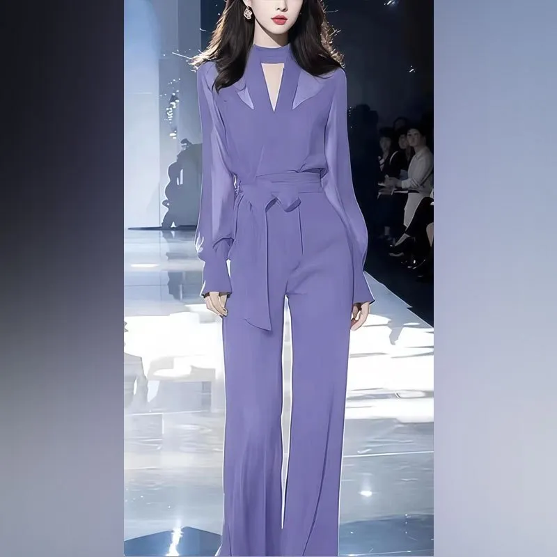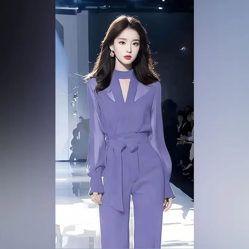 御姐轻熟风穿搭套装女2025高级感别致镂空长袖上衣+高腰垂感裤子