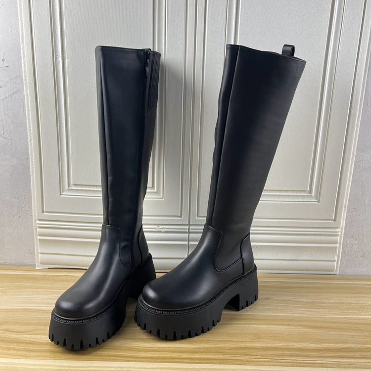 Lady Shoes杂款37码外贸原单独码女靴粗跟时尚圆头纯色时装短靴