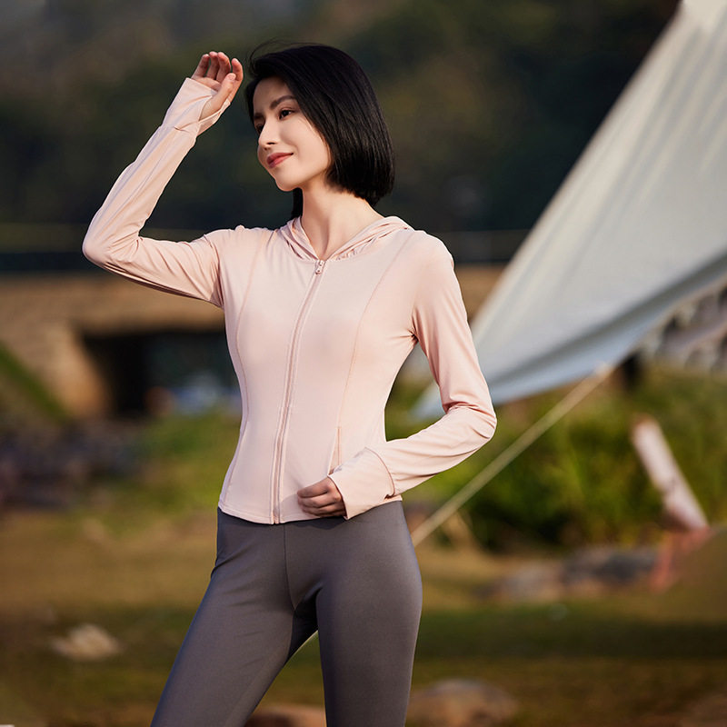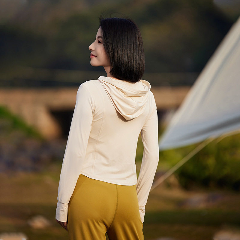 原纱型防晒衣紧身修身连帽防晒服UPF50+防紫外线运动弹力瑜伽外套
