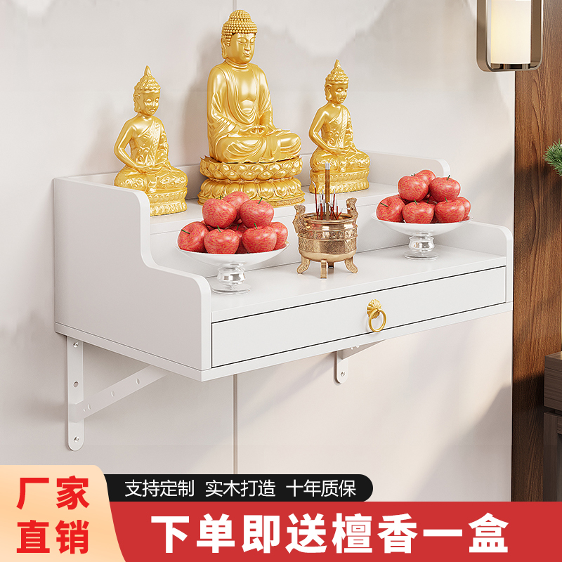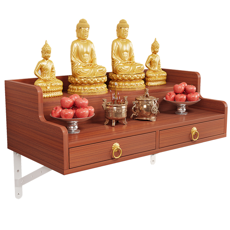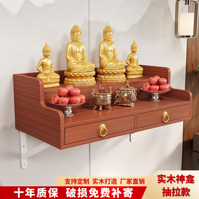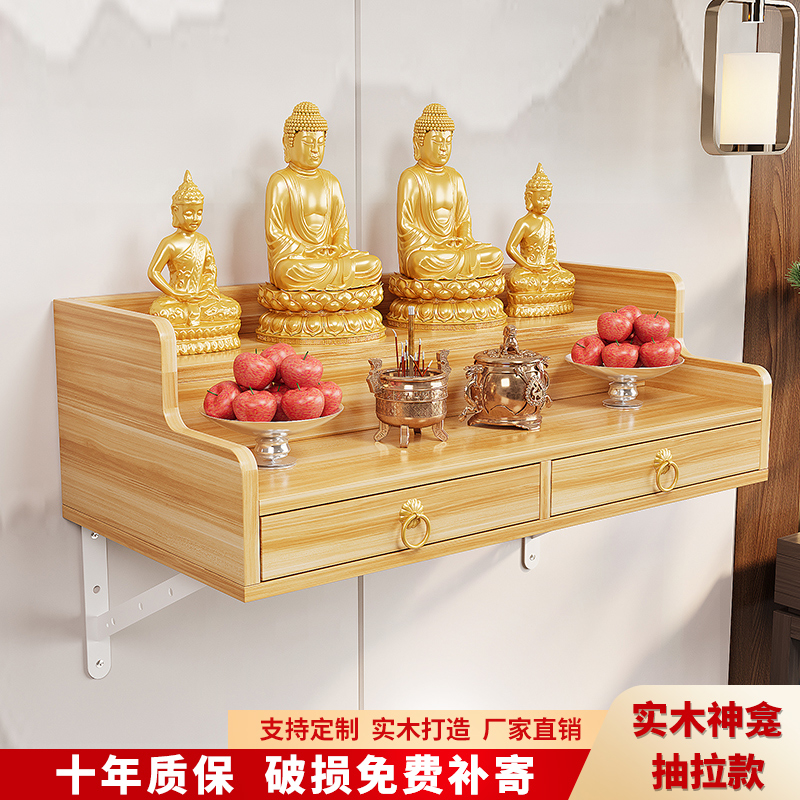 实木佛龛财神墙壁挂式吊柜菩萨神台简约现代家用新中式供台可