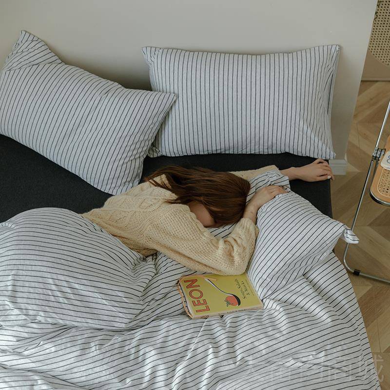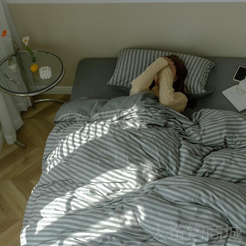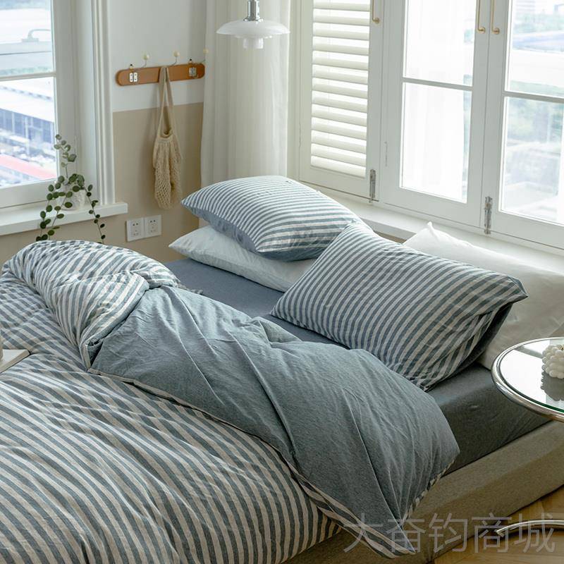 正品简约全棉针套织棉四件 裸睡天竺棉棉床单被套 床笠纯款三件床