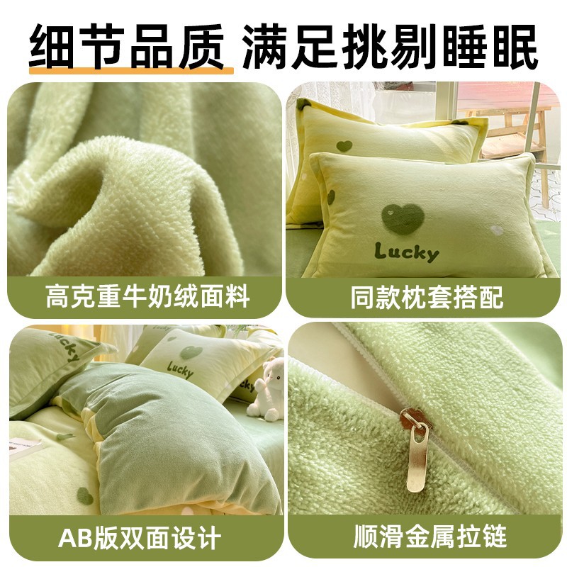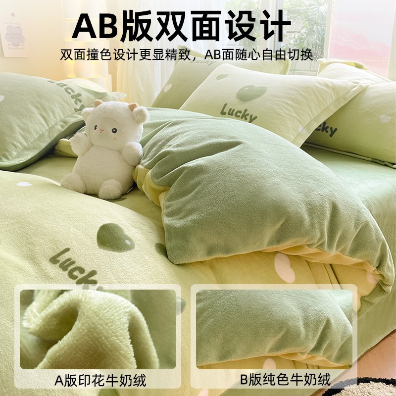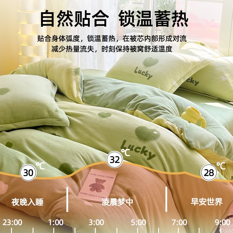 冬季牛奶绒被套单件印花小清新卡通可爱双面绒加厚保暖四件套床品