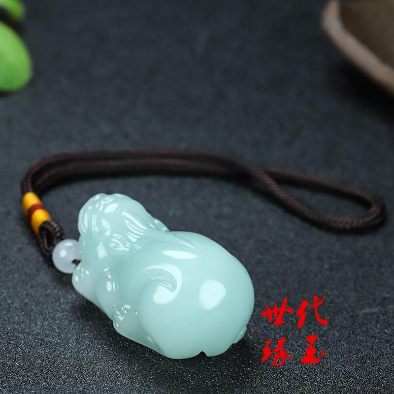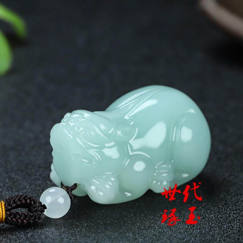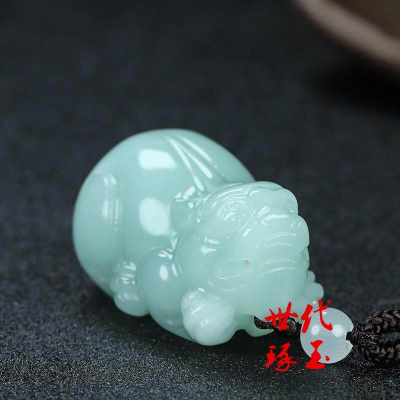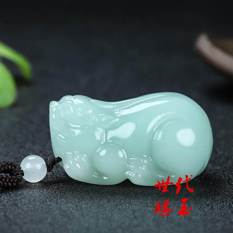 新疆和田玉青白玉貔貅手把件天然玉石招财貔貅把件晴水蓝貔貅挂件