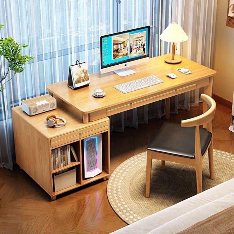 锦巢实木转角书桌带边柜电脑桌可伸缩办公桌学生家用简约学习桌