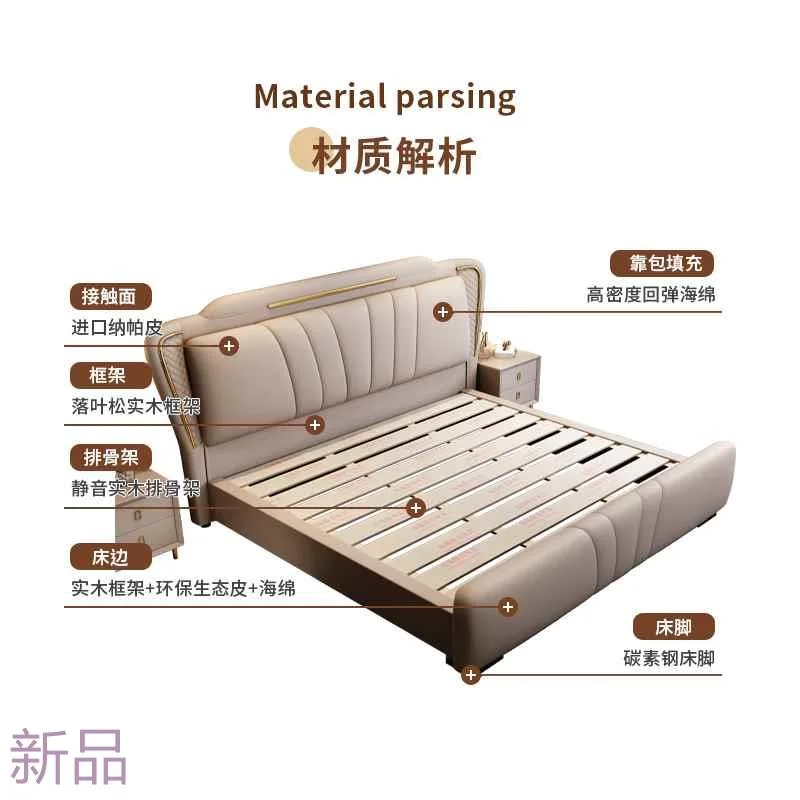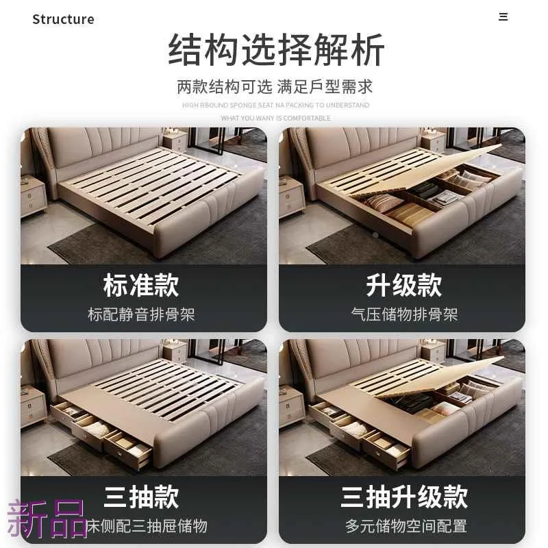 意式轻奢纳帕皮床1.8米主卧真皮床现代简约大小户型爆款储物新品