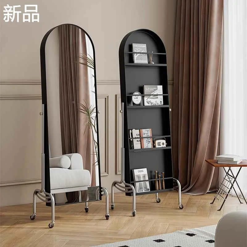 可移动穿衣镜家用落地镜杂志架置物书架卧室可调节旋转镜子全新品