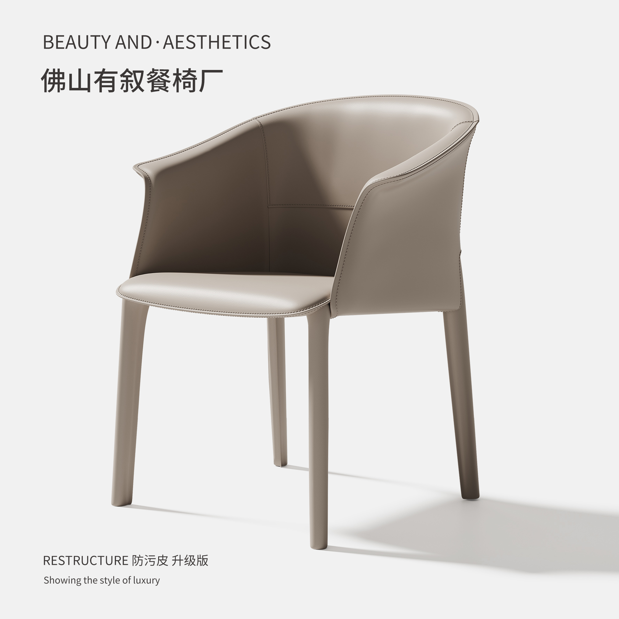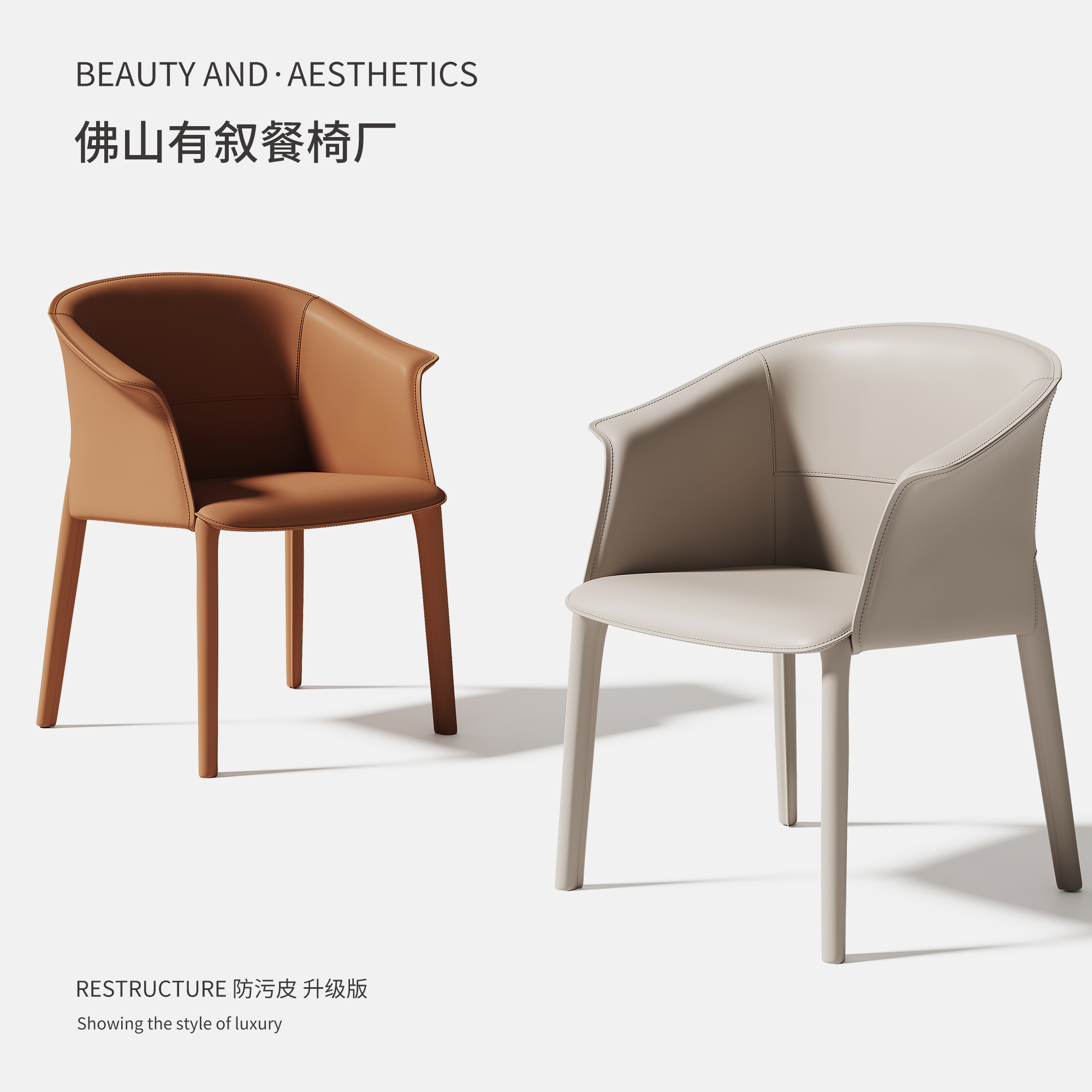 有叙意式中古极简马鞍皮餐厅酒店扶手靠背椅子书椅设计师家用餐椅
