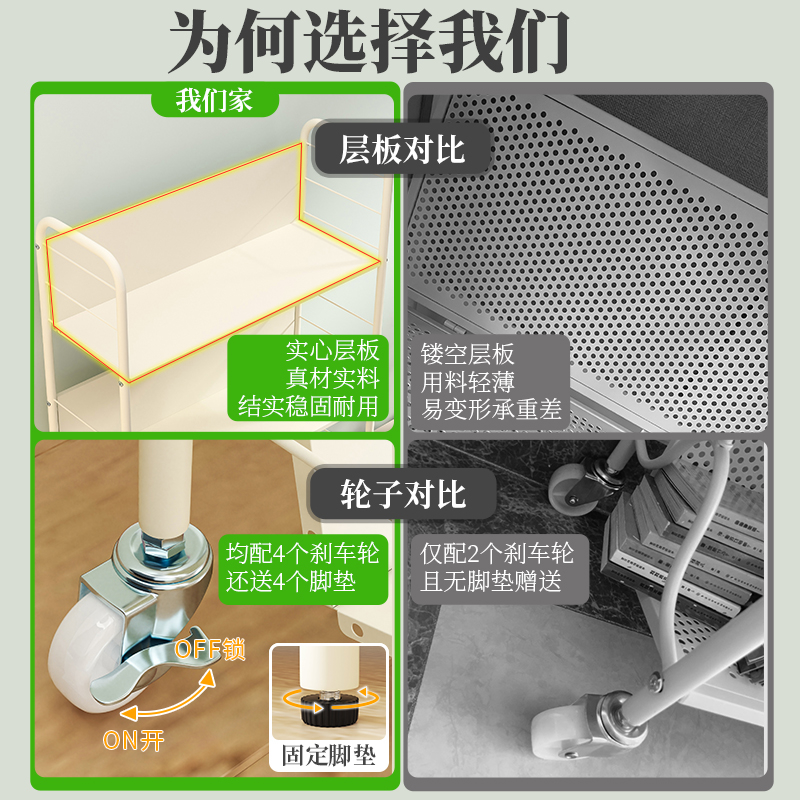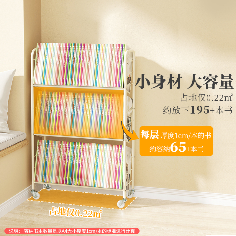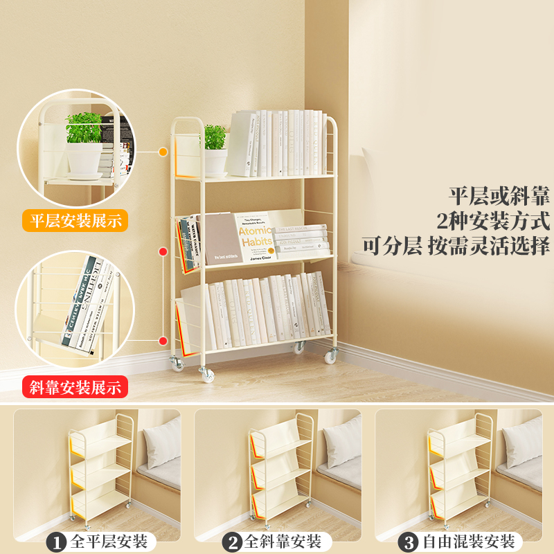 书架落地置物架可移动带轮儿童小书柜家用简易推车零食收纳架铁艺