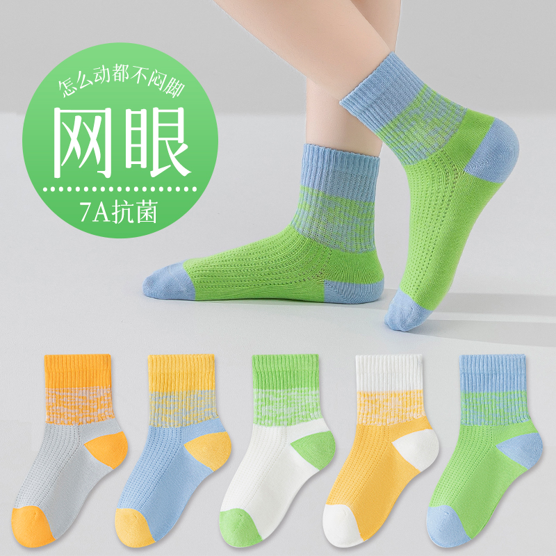 纯棉无骨抗起球抗菌防臭春夏儿童袜子网眼吸汗透气百搭运动学生袜
