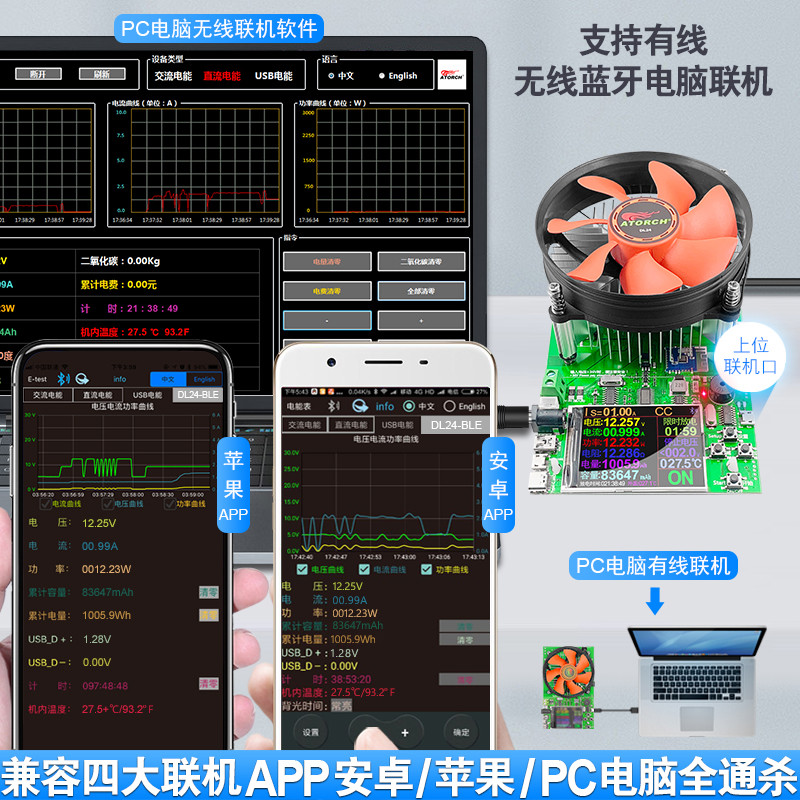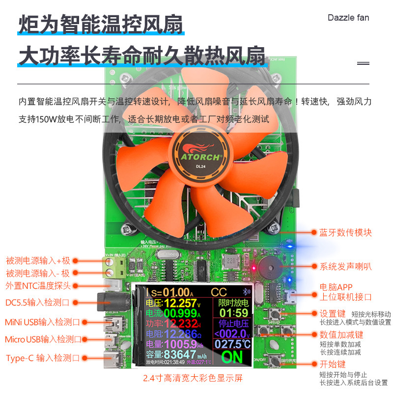 DL24数显电子负载电压电流表电池容量功率老化放电器usb检测试仪