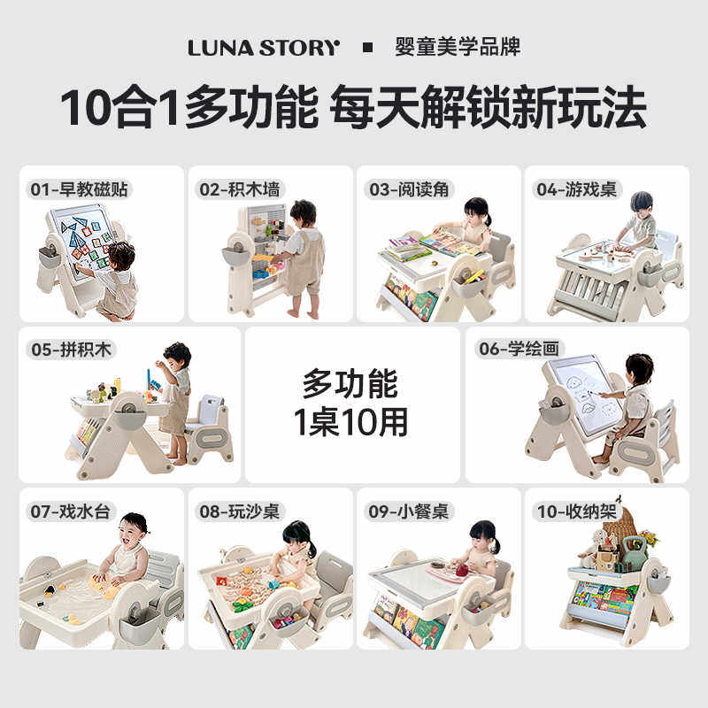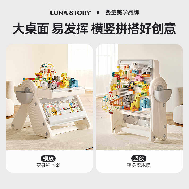 Lunastory积木桌子儿童多功能玩具桌宝宝游戏桌大颗粒积木画板