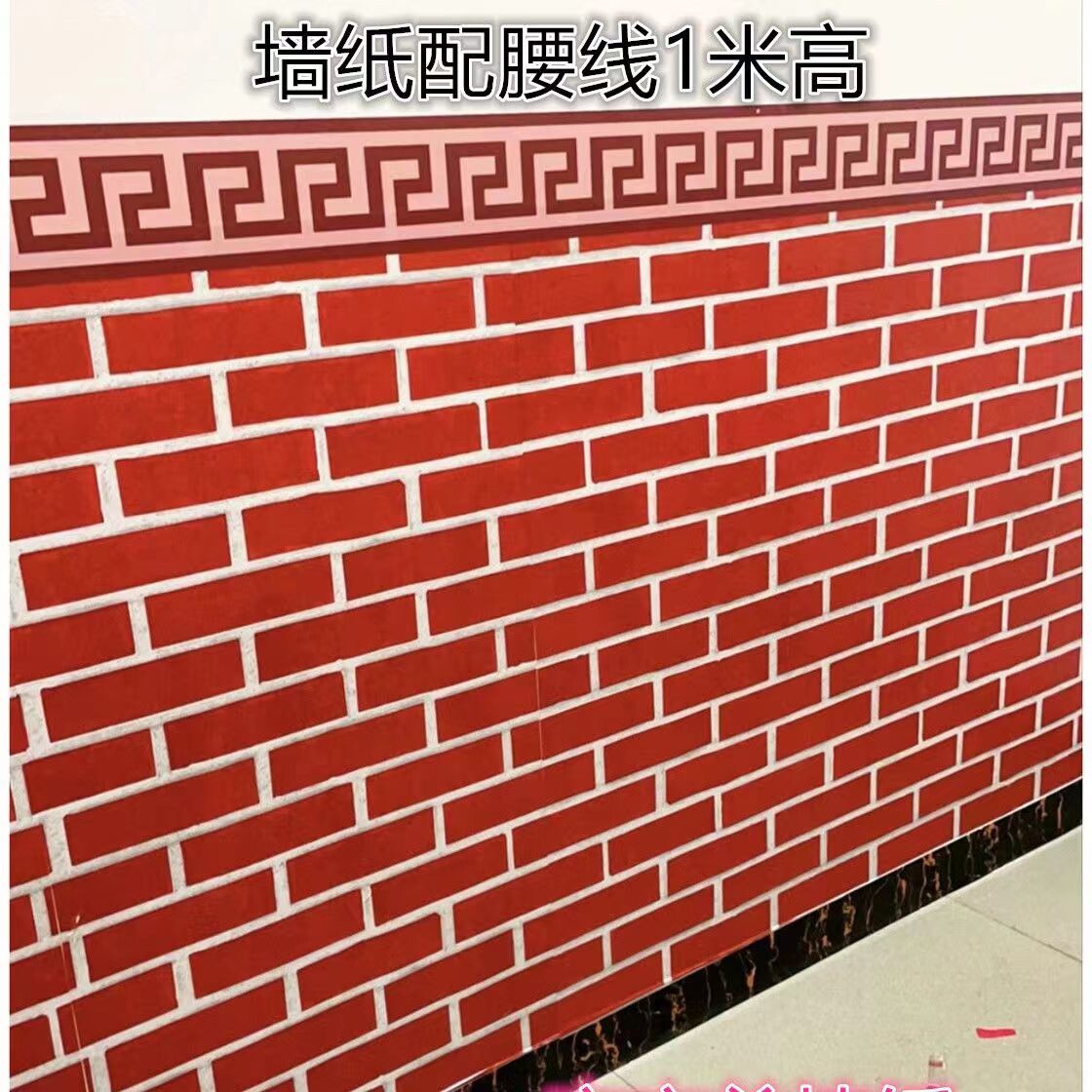 饭店自粘墙纸餐厅墙围砖纹防水壁纸烧烤麻辣烫店铺装修复古砖墙裙
