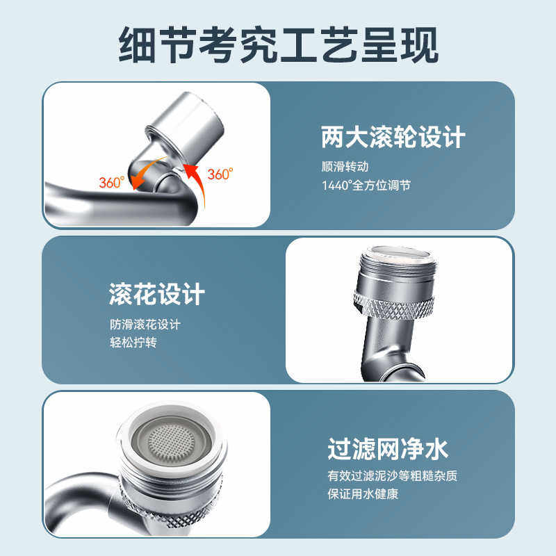欧派卫浴 机械臂万向1440°旋转水龙头铜起泡器延伸器防溅水水嘴